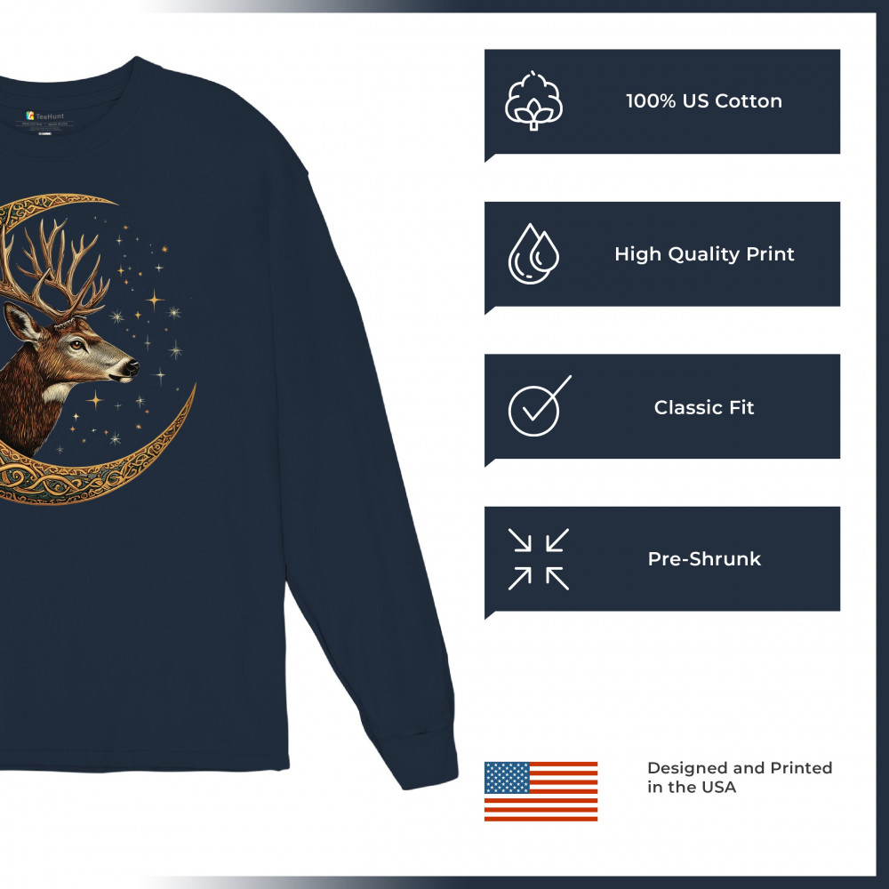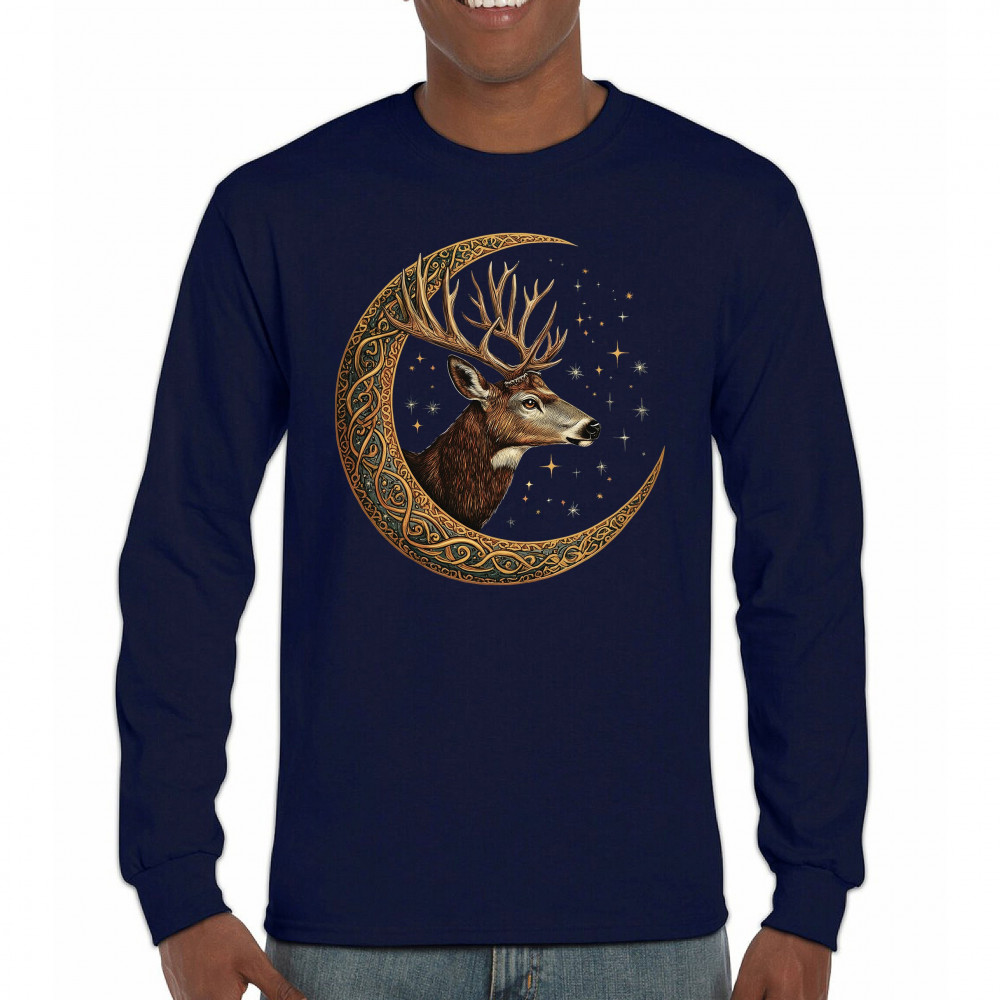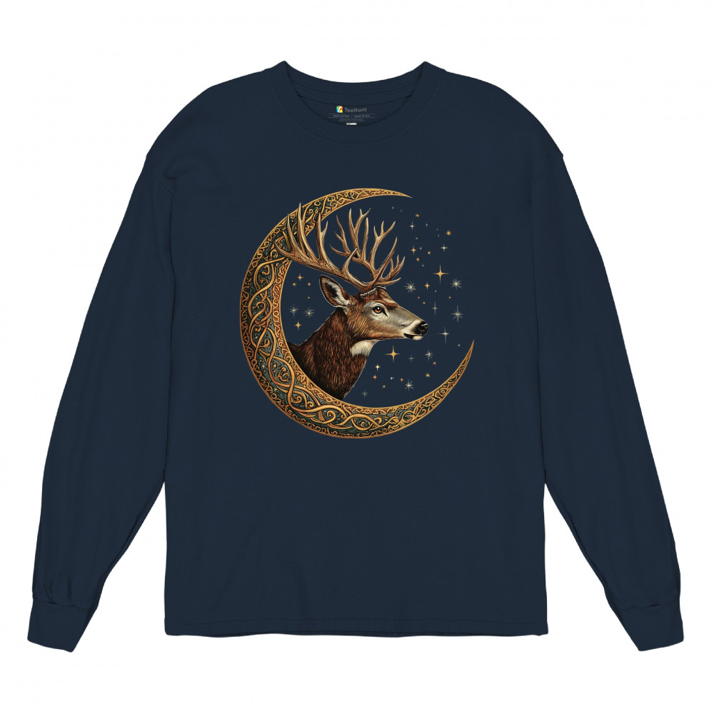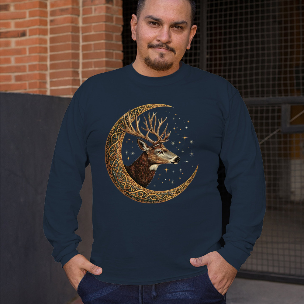 Majestic deer in Celtic moon with stars—symbol of protection, nature, and cosmic wisdom. A mystical gift for hunters, druids, and forest lovers.
