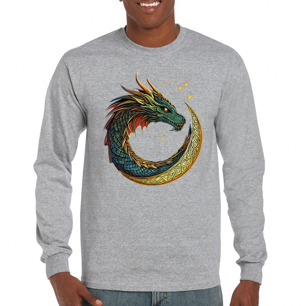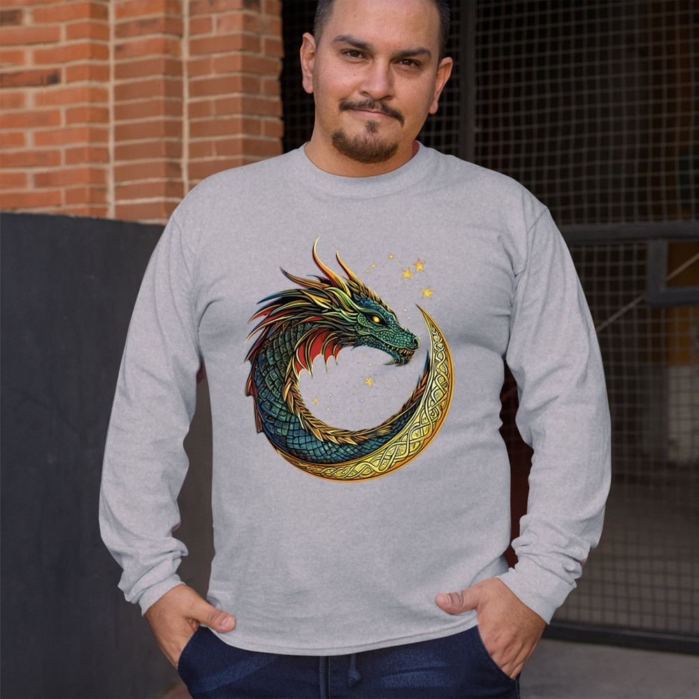 Unleash the spirit of transformation with this fierce dragon coiled inside a golden Celtic crescent moon. Its radiant scales and glowing eyes come to life against a starry, mystical sky. A symbol of fire energy, wisdom, and primal strength—perfect for gamers, fantasy enthusiasts, spiritual seekers, and legend lovers.