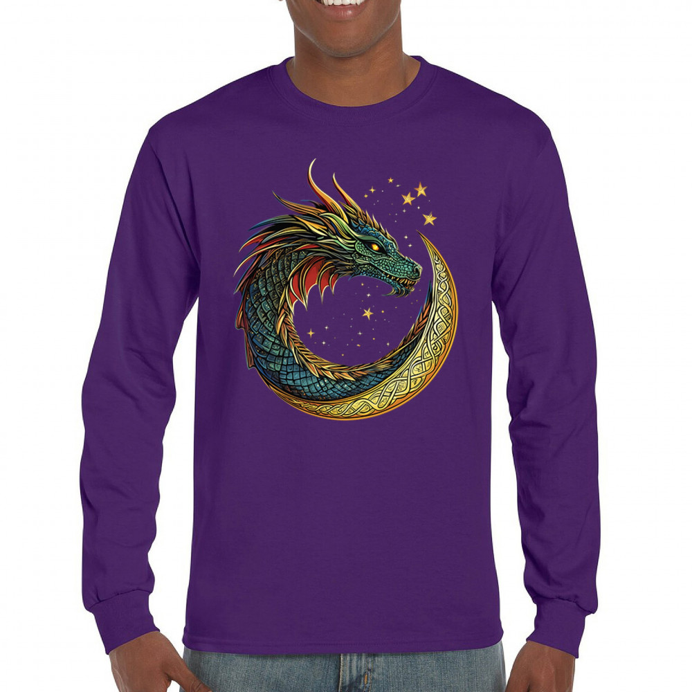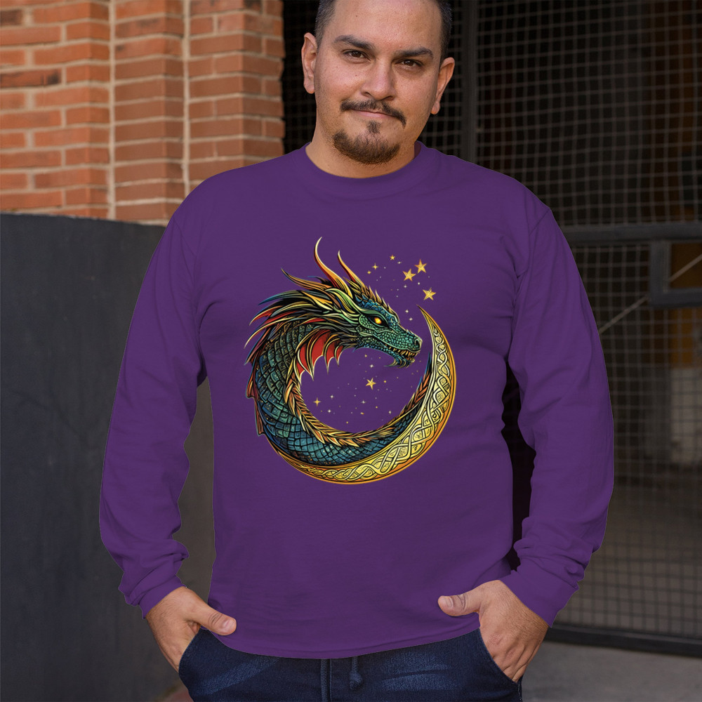 Unleash the spirit of transformation with this fierce dragon coiled inside a golden Celtic crescent moon. Its radiant scales and glowing eyes come to life against a starry, mystical sky. A symbol of fire energy, wisdom, and primal strength—perfect for gamers, fantasy enthusiasts, spiritual seekers, and legend lovers.