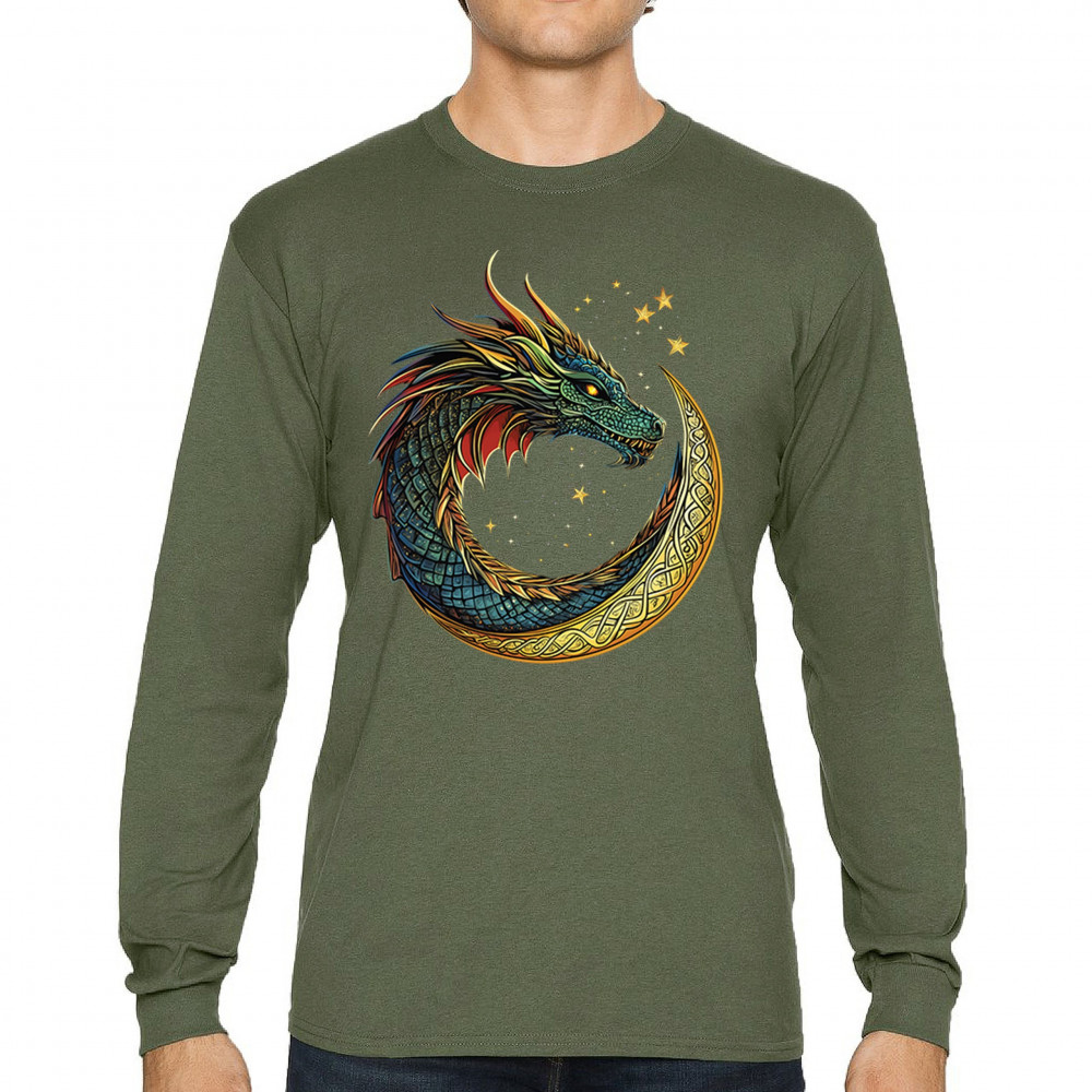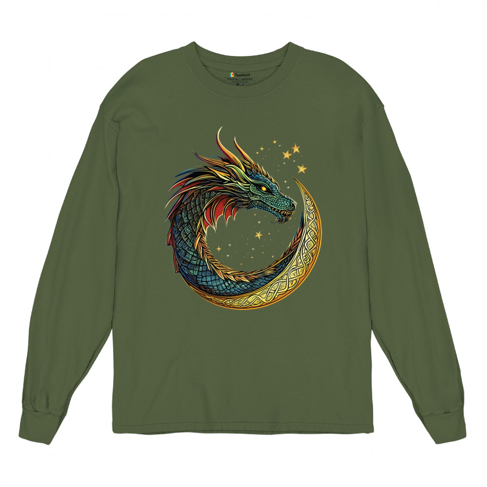 Unleash the spirit of transformation with this fierce dragon coiled inside a golden Celtic crescent moon. Its radiant scales and glowing eyes come to life against a starry, mystical sky. A symbol of fire energy, wisdom, and primal strength—perfect for gamers, fantasy enthusiasts, spiritual seekers, and legend lovers.