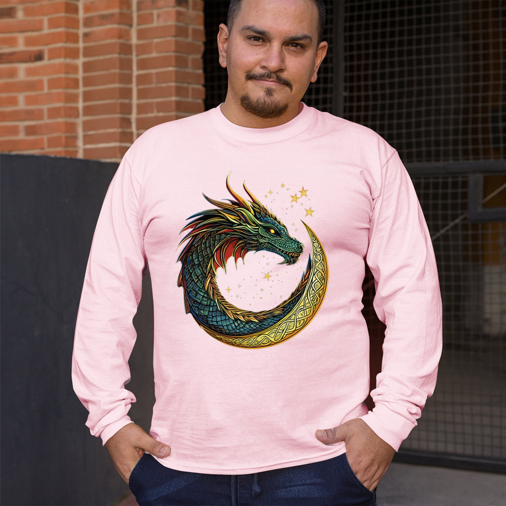 Unleash the spirit of transformation with this fierce dragon coiled inside a golden Celtic crescent moon. Its radiant scales and glowing eyes come to life against a starry, mystical sky. A symbol of fire energy, wisdom, and primal strength—perfect for gamers, fantasy enthusiasts, spiritual seekers, and legend lovers.
