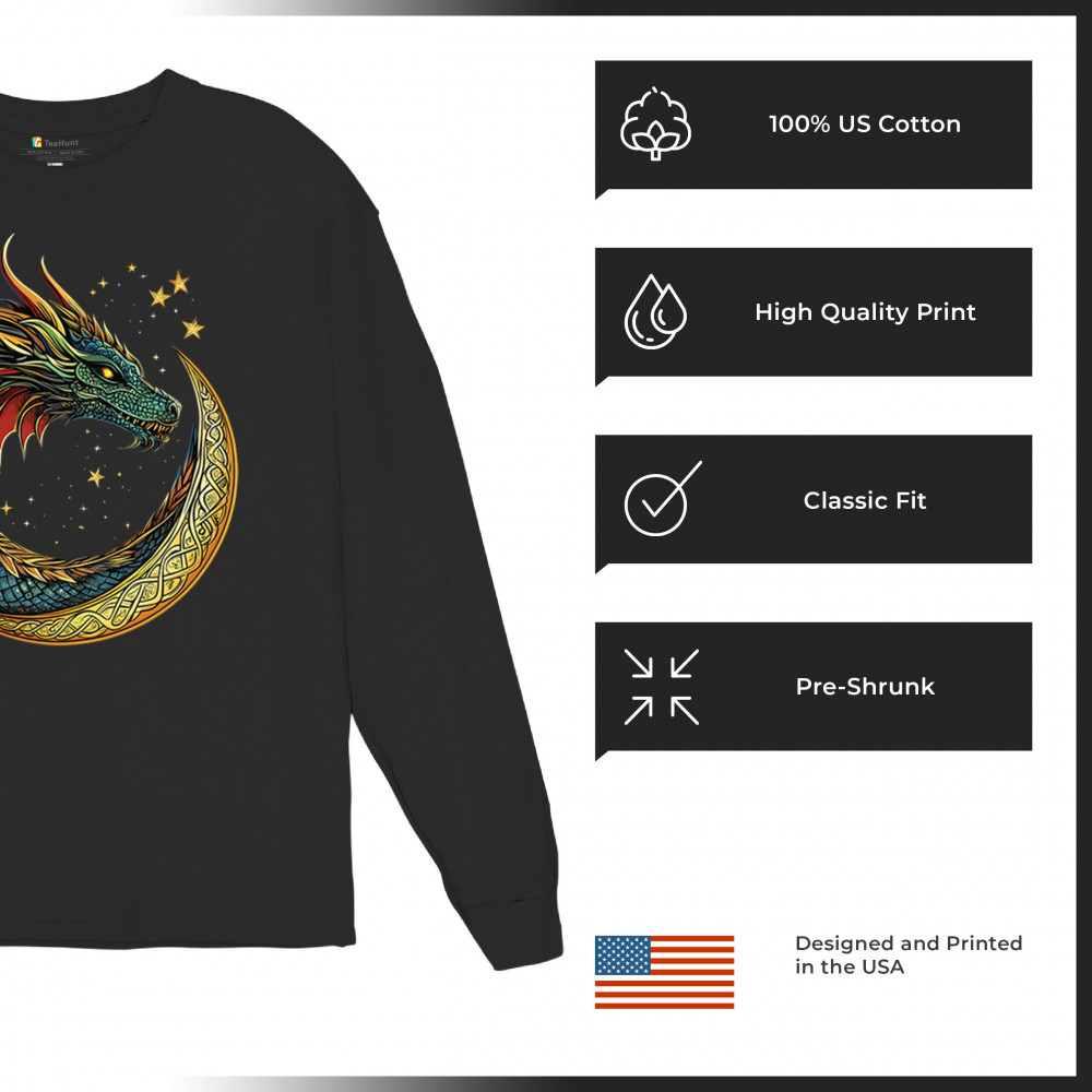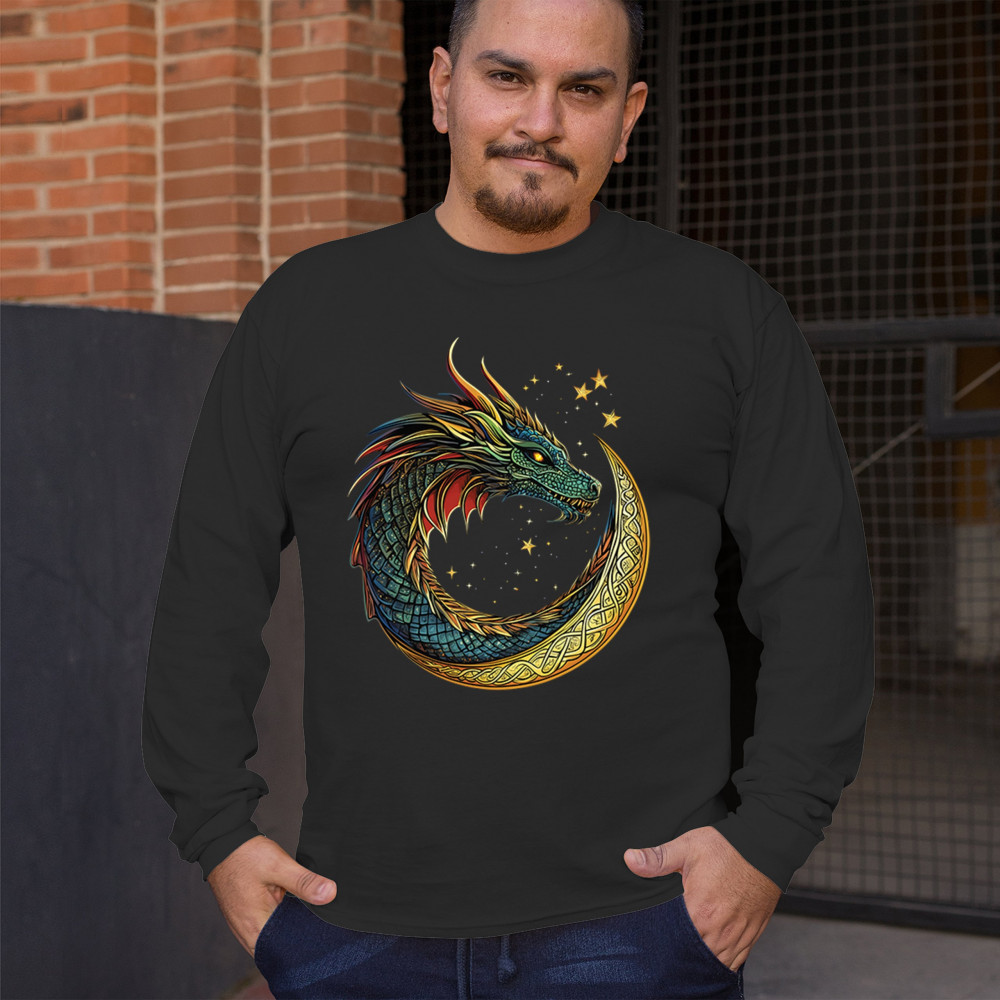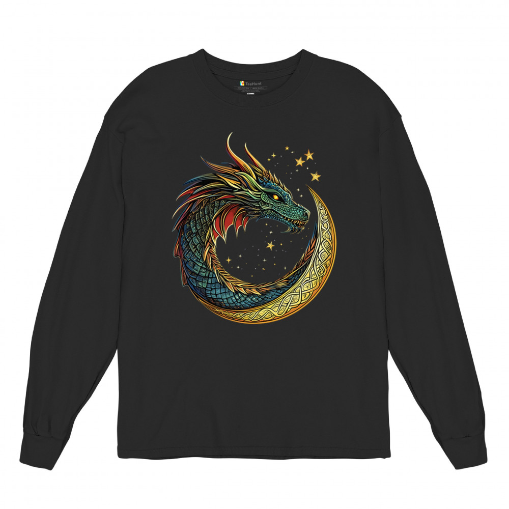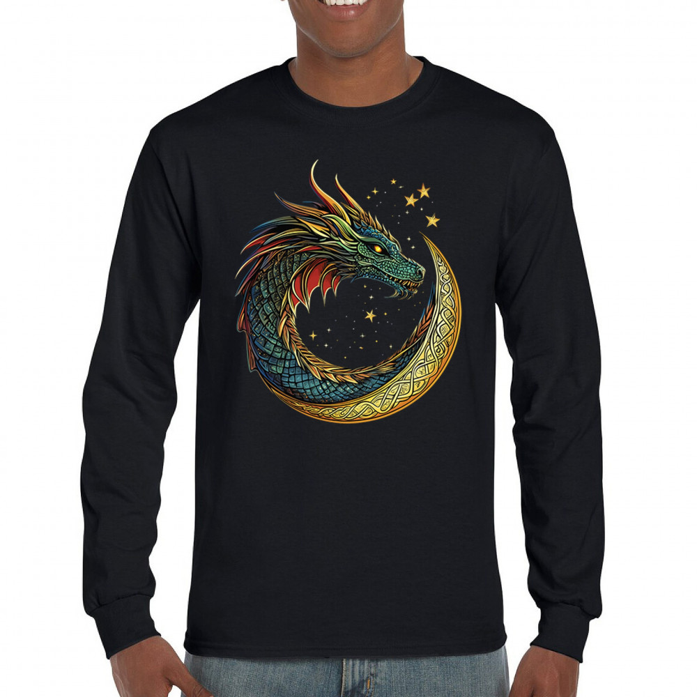CELTIC MOON DRAGON long sleeve t-shirt mystical serpent spiritual fantasy fire black