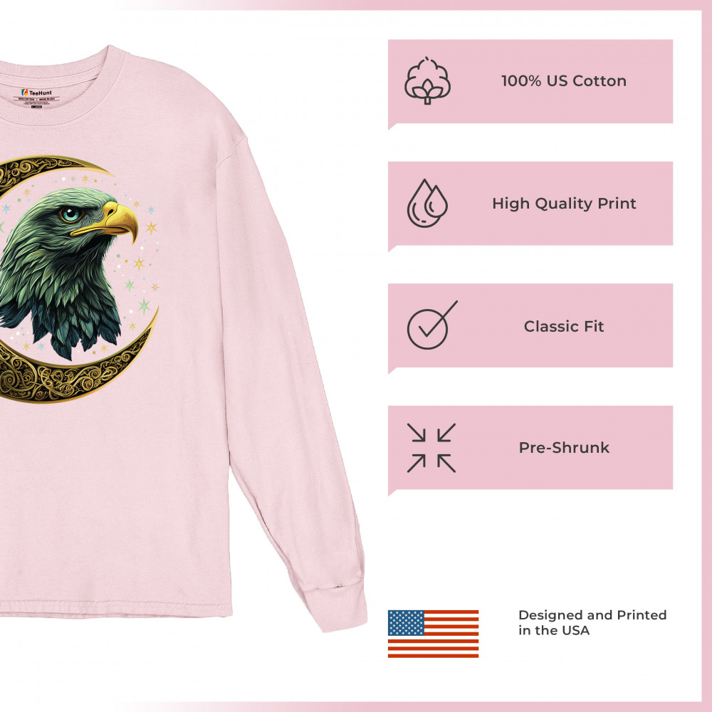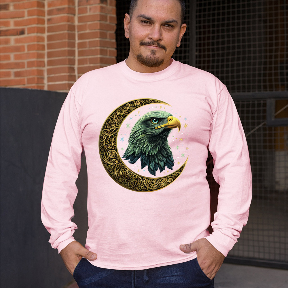 Majestic eagle in golden Celtic moon with stars—symbol of strength, vision, and freedom. Perfect for patriots, spiritual seekers, and nature lovers.