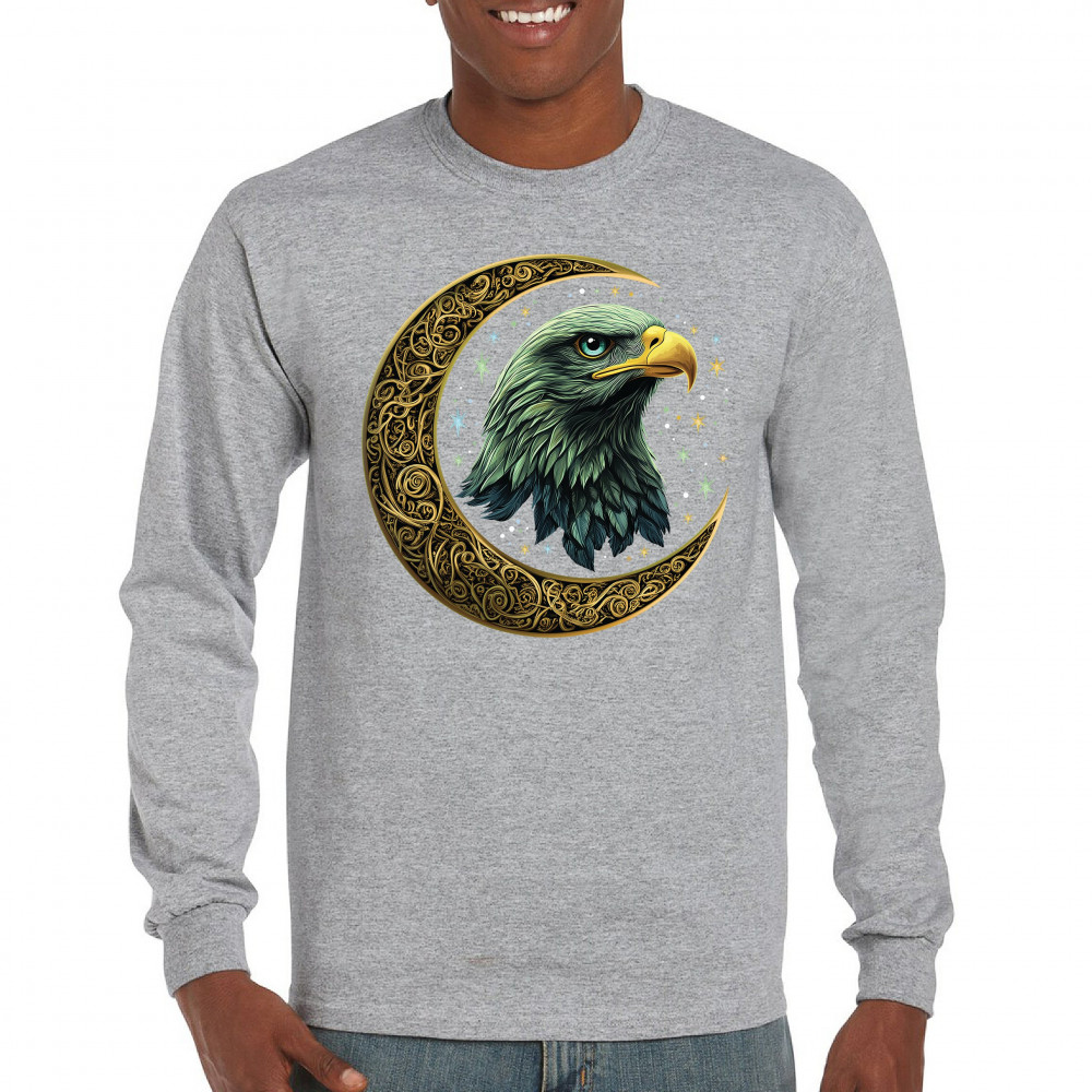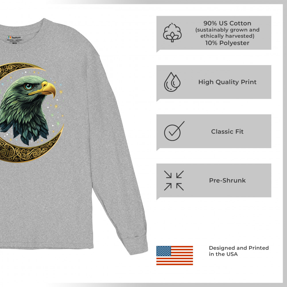 Majestic eagle in golden Celtic moon with stars—symbol of strength, vision, and freedom. Perfect for patriots, spiritual seekers, and nature lovers.