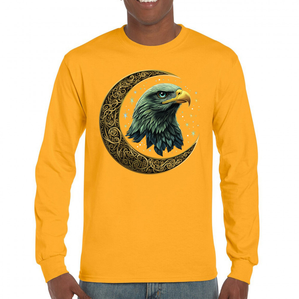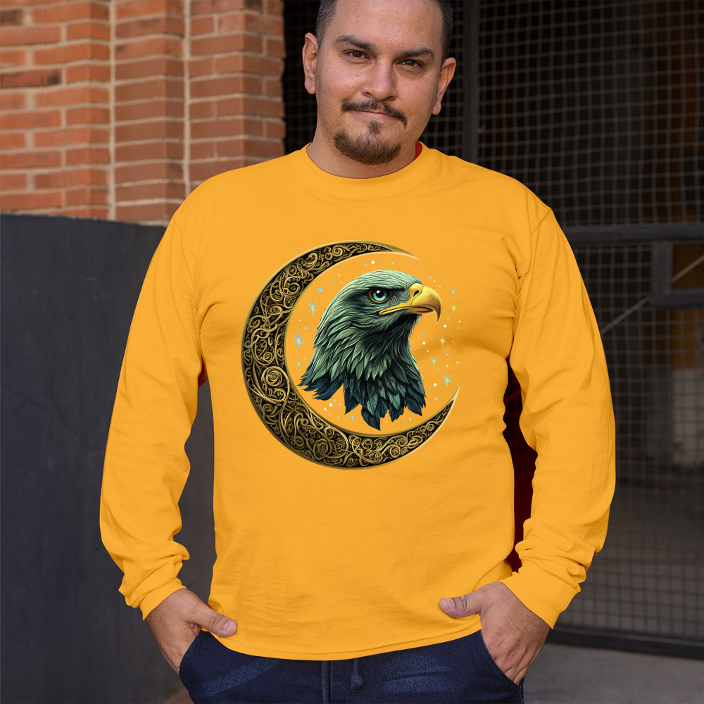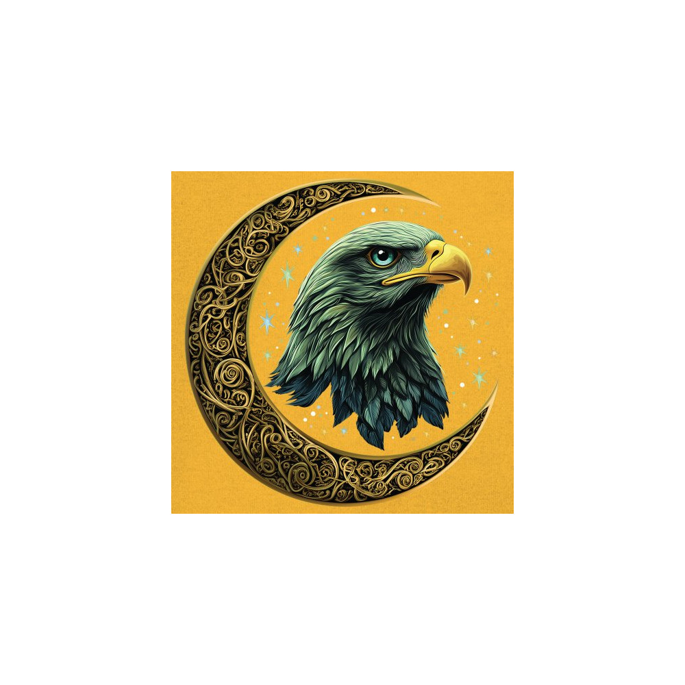 Majestic eagle in golden Celtic moon with stars—symbol of strength, vision, and freedom. Perfect for patriots, spiritual seekers, and nature lovers.