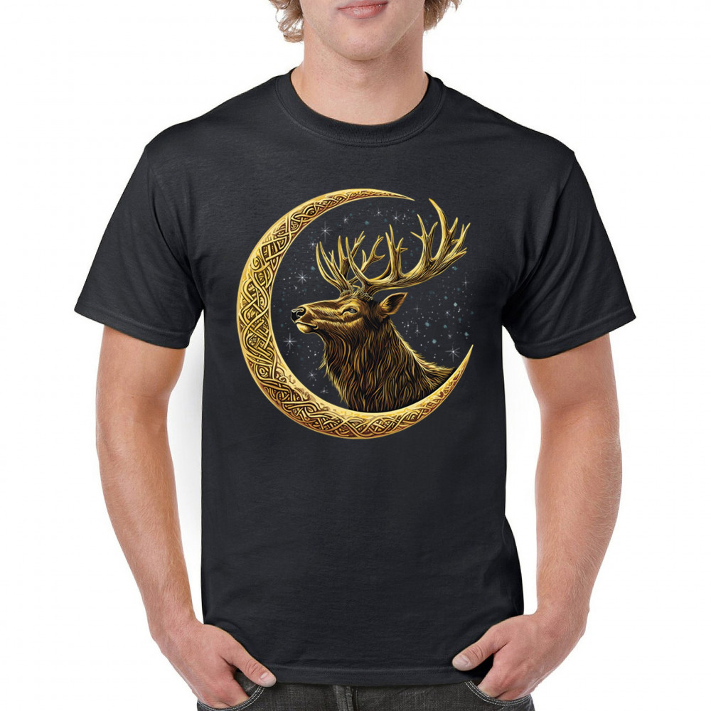 CELTIC MOON ELK t-shirt north mystic nature spiritual nordic buck men's tee black