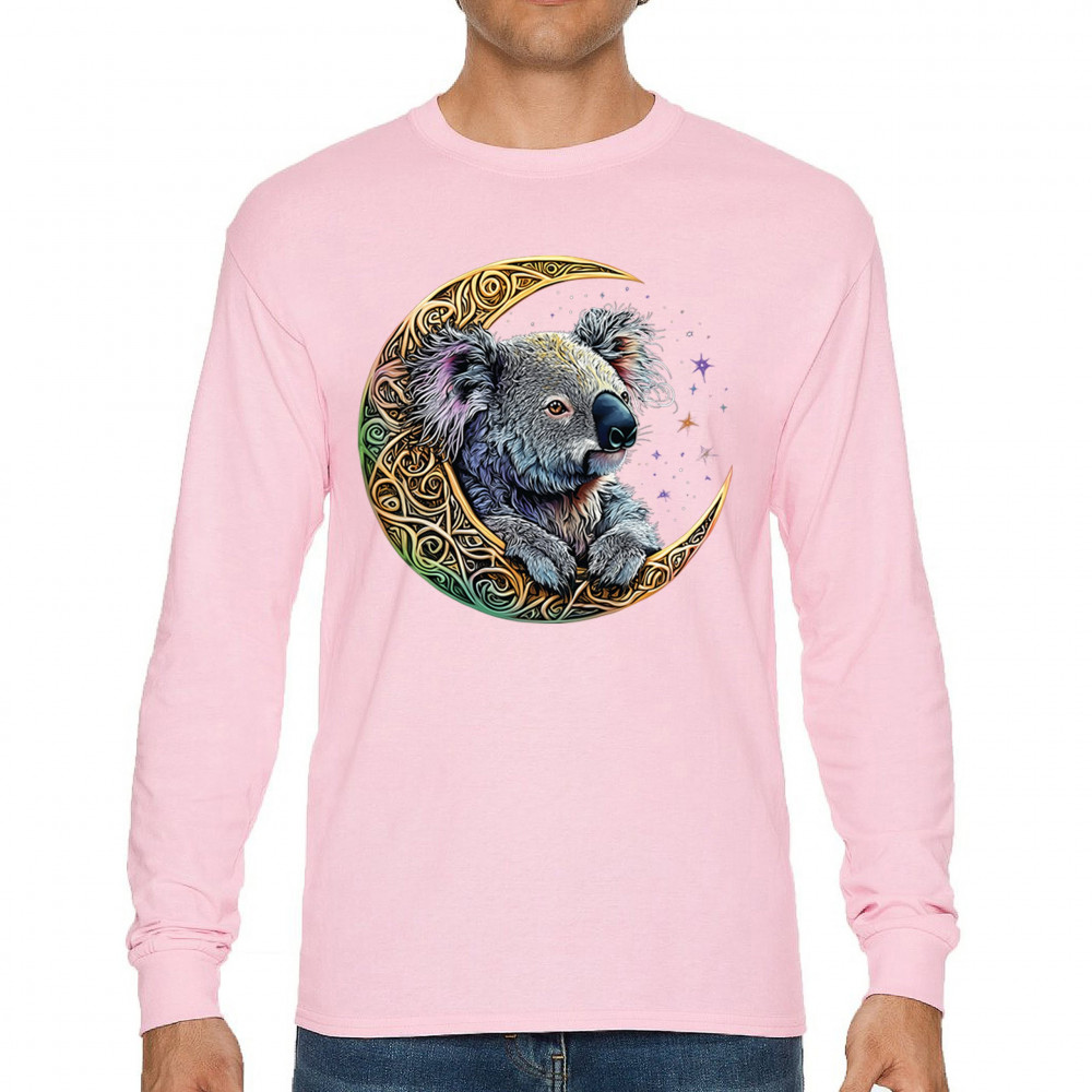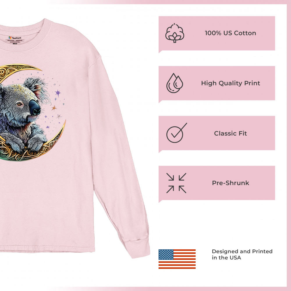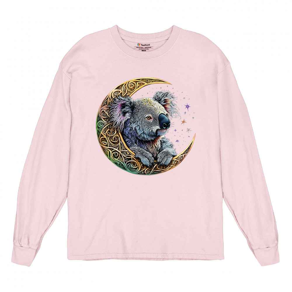 Koala resting in Celtic crescent moon with cosmic sky. A peaceful design for nature lovers, spiritual thinkers, and fantasy art fans.
