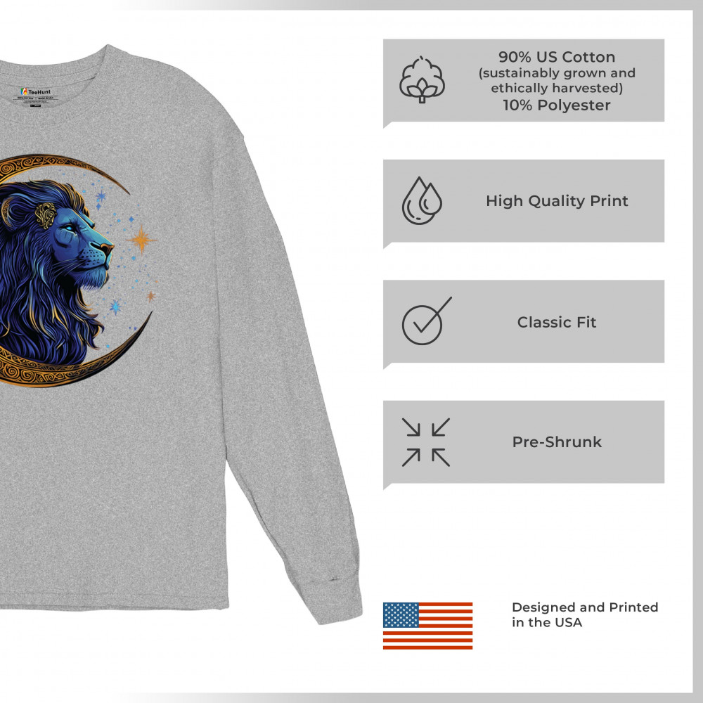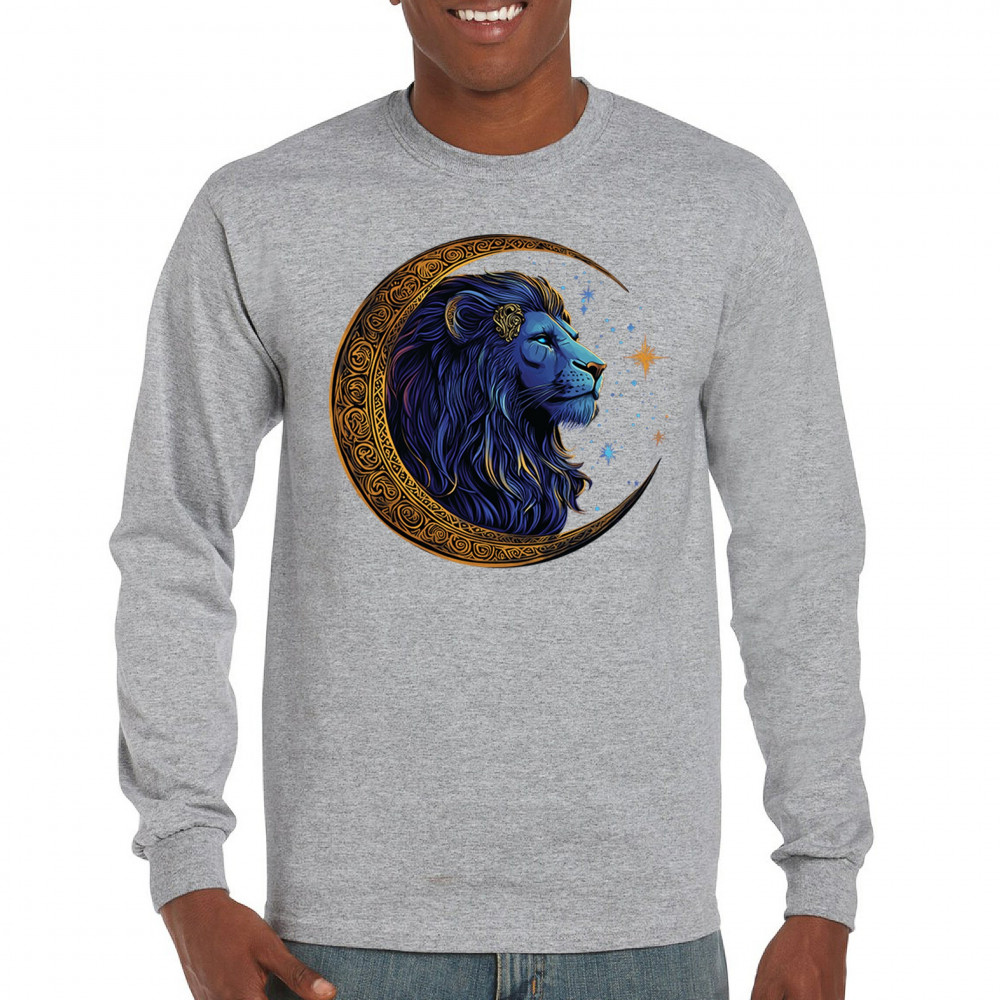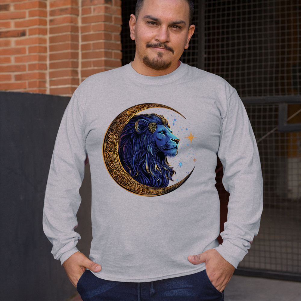 Majestic lion in Celtic crescent moon design—ideal for Leos, fantasy fans, and spiritual seekers drawn to strength and celestial symbolism.