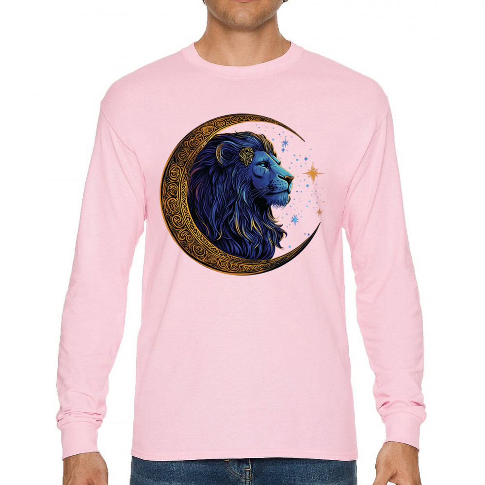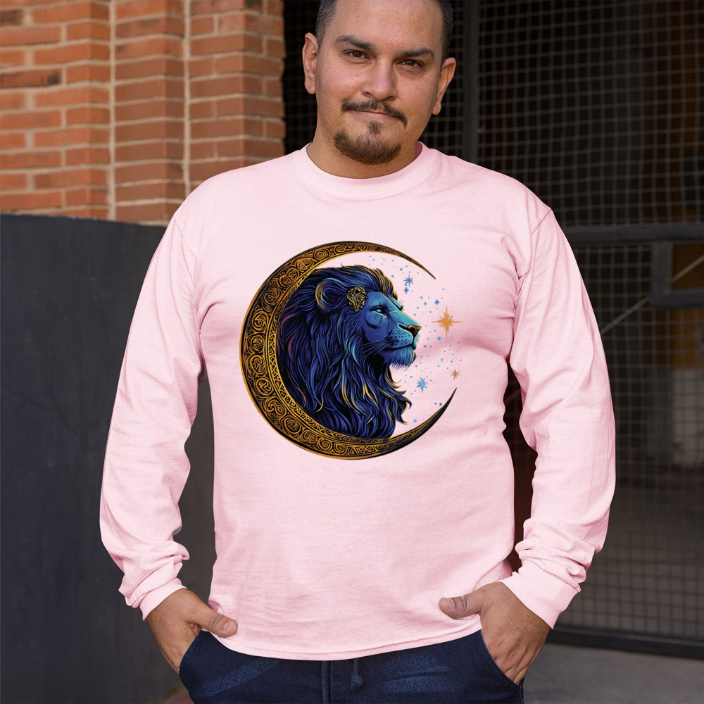Majestic lion in Celtic crescent moon design—ideal for Leos, fantasy fans, and spiritual seekers drawn to strength and celestial symbolism.