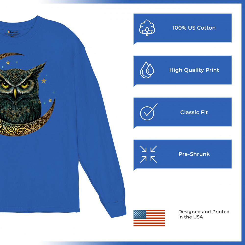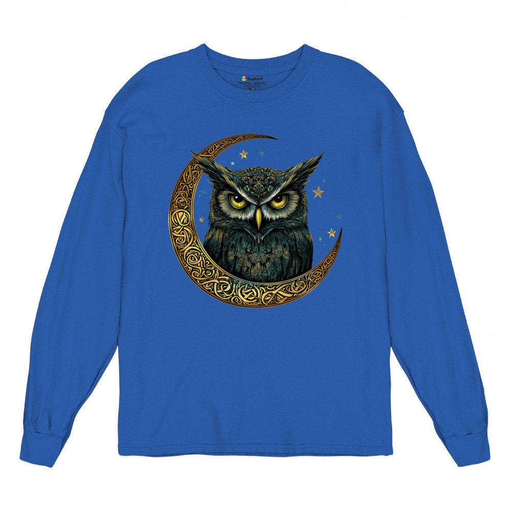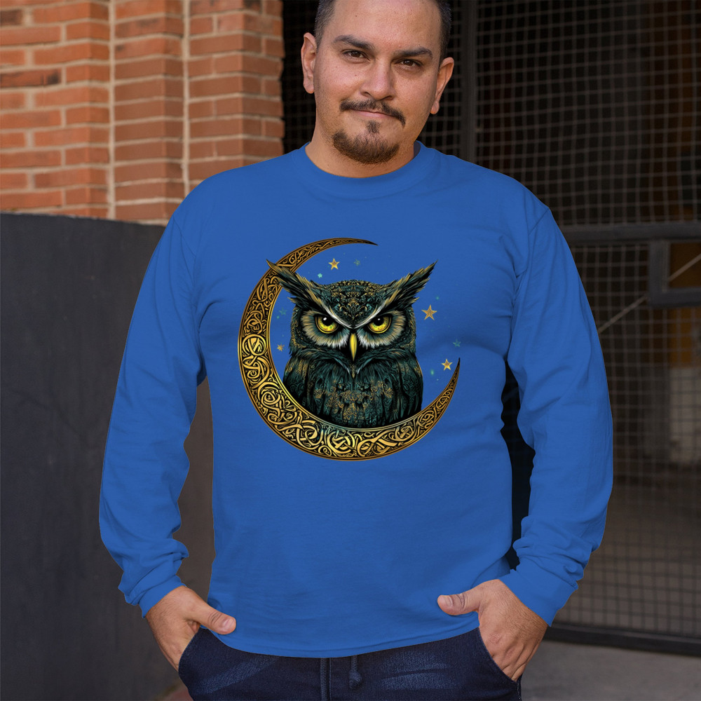 Cosmic owl in Celtic crescent moon—symbol of wisdom, night mystery, and spirit. Perfect for mystics, owl lovers, and fantasy fans.