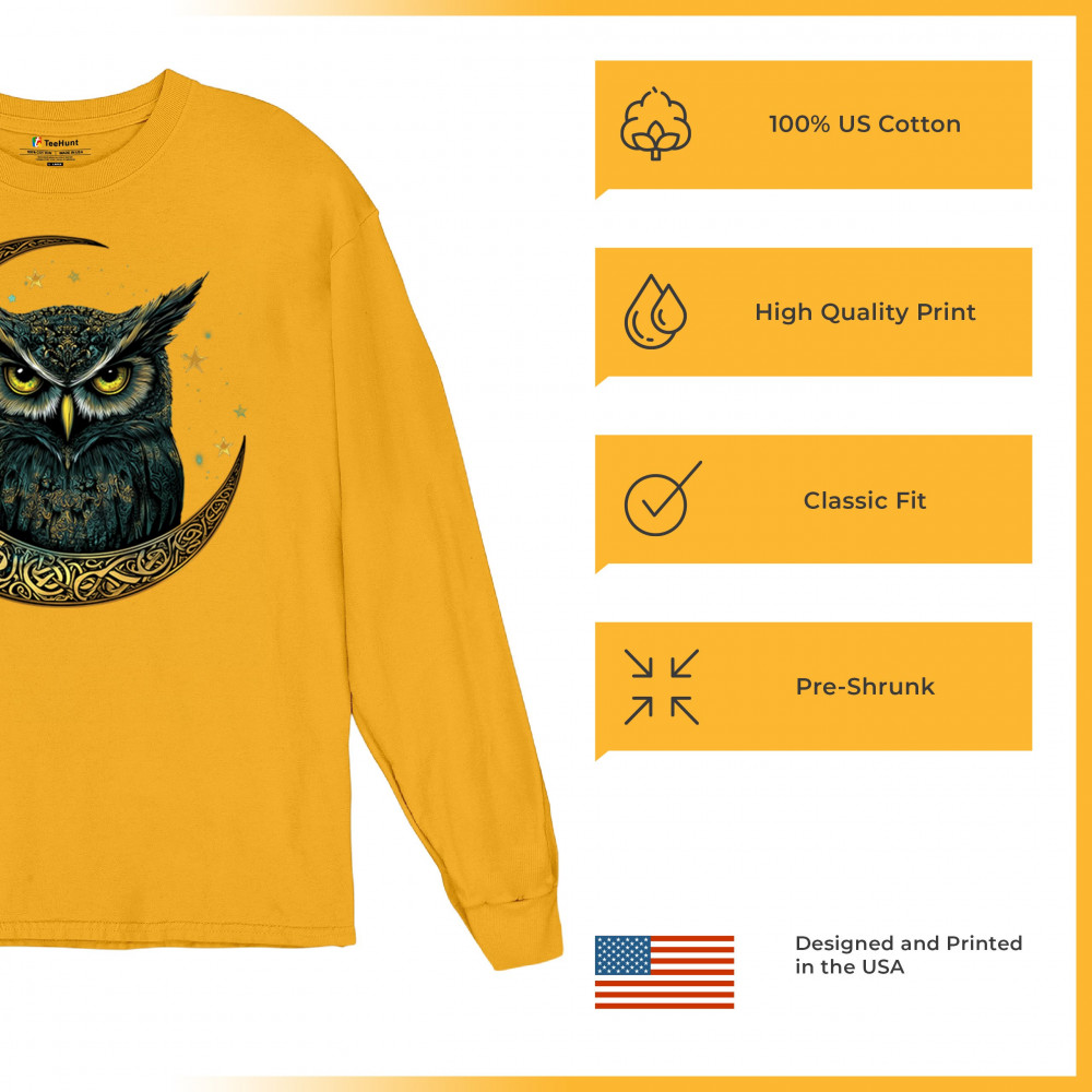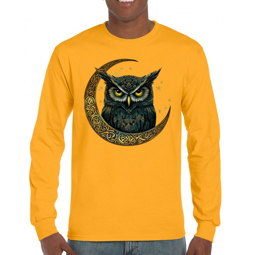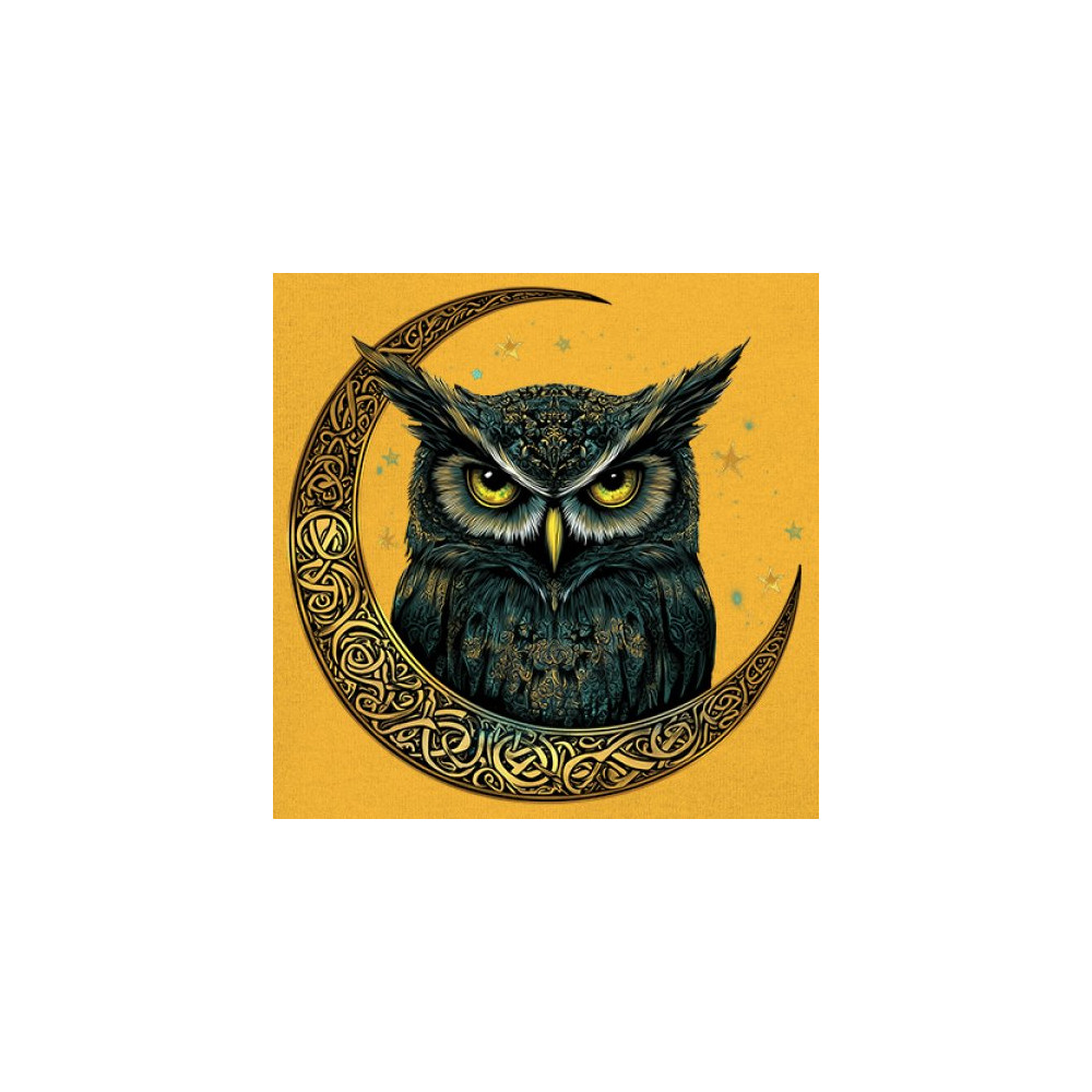 Cosmic owl in Celtic crescent moon—symbol of wisdom, night mystery, and spirit. Perfect for mystics, owl lovers, and fantasy fans.