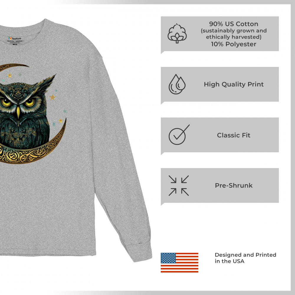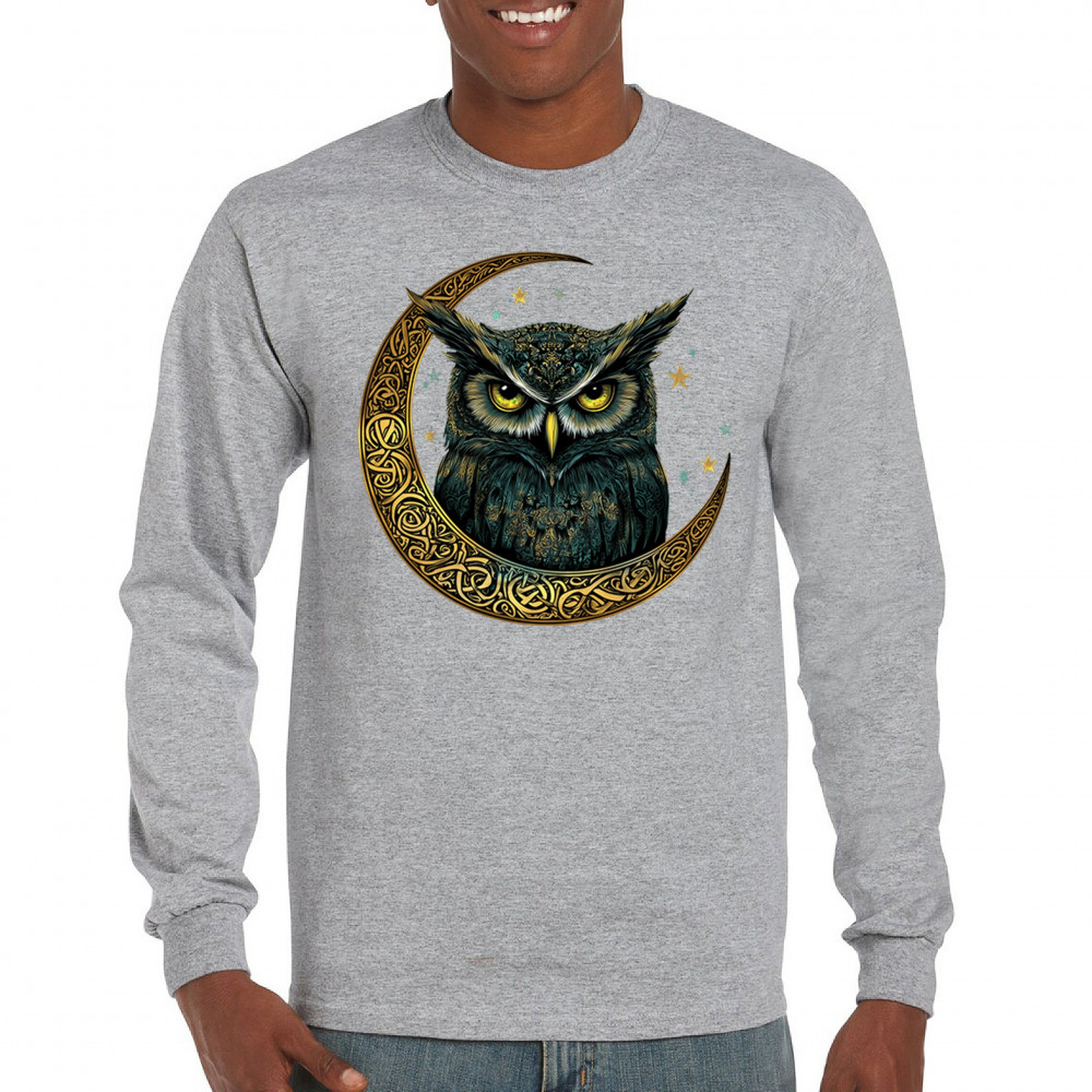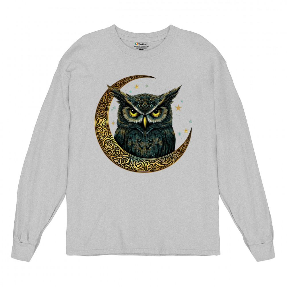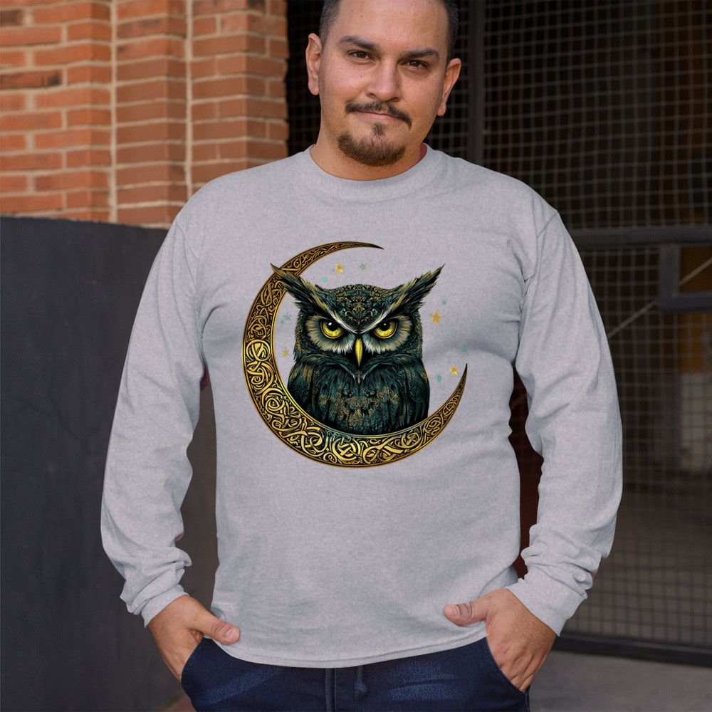 Cosmic owl in Celtic crescent moon—symbol of wisdom, night mystery, and spirit. Perfect for mystics, owl lovers, and fantasy fans.