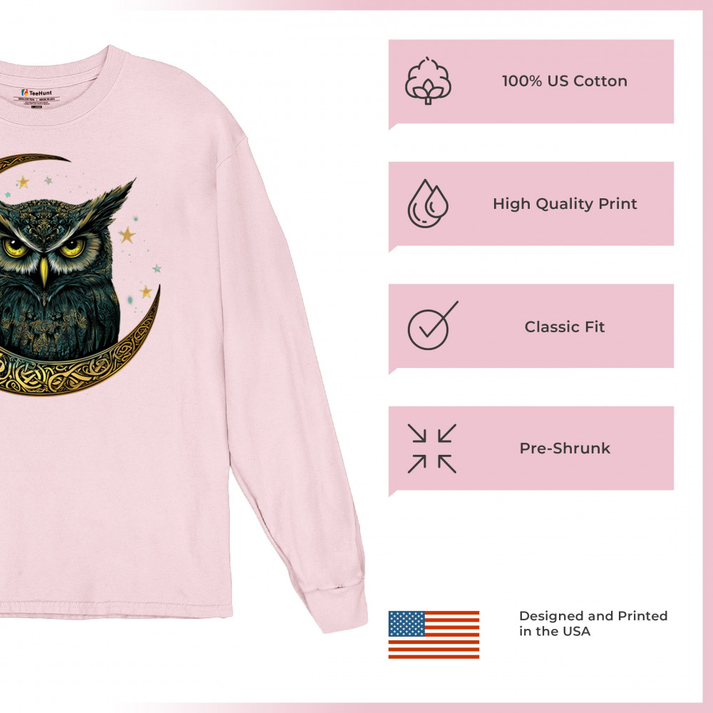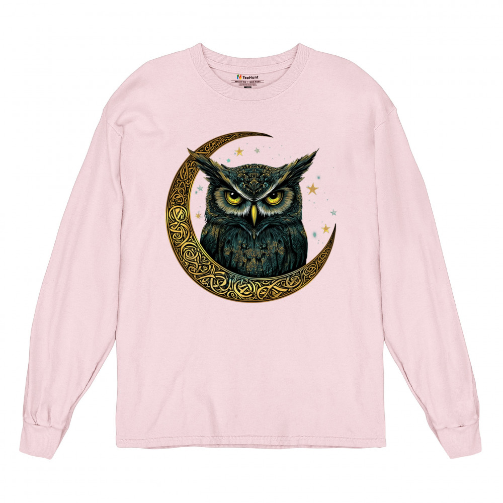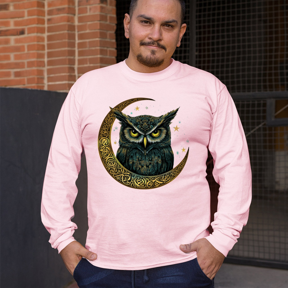Cosmic owl in Celtic crescent moon—symbol of wisdom, night mystery, and spirit. Perfect for mystics, owl lovers, and fantasy fans.