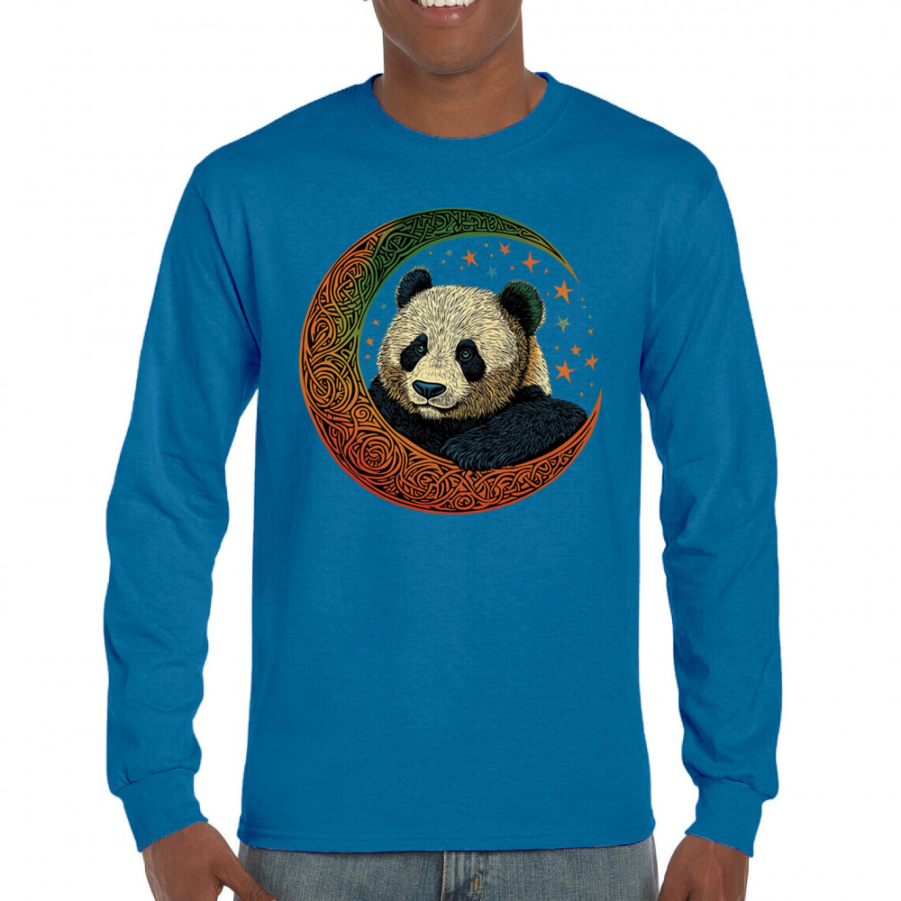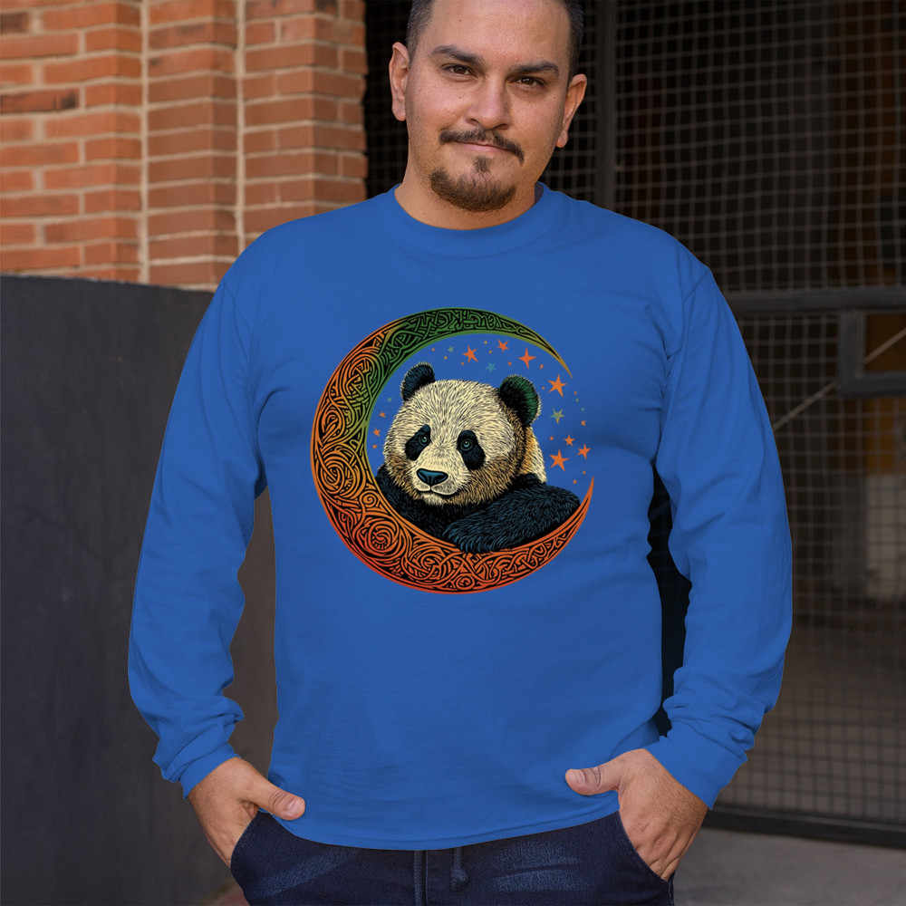 Peaceful panda in Celtic crescent moon design—symbol of harmony, balance, and spiritual calm for nature lovers, mystics, and gentle souls.