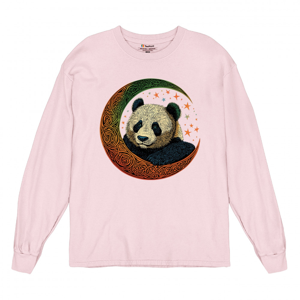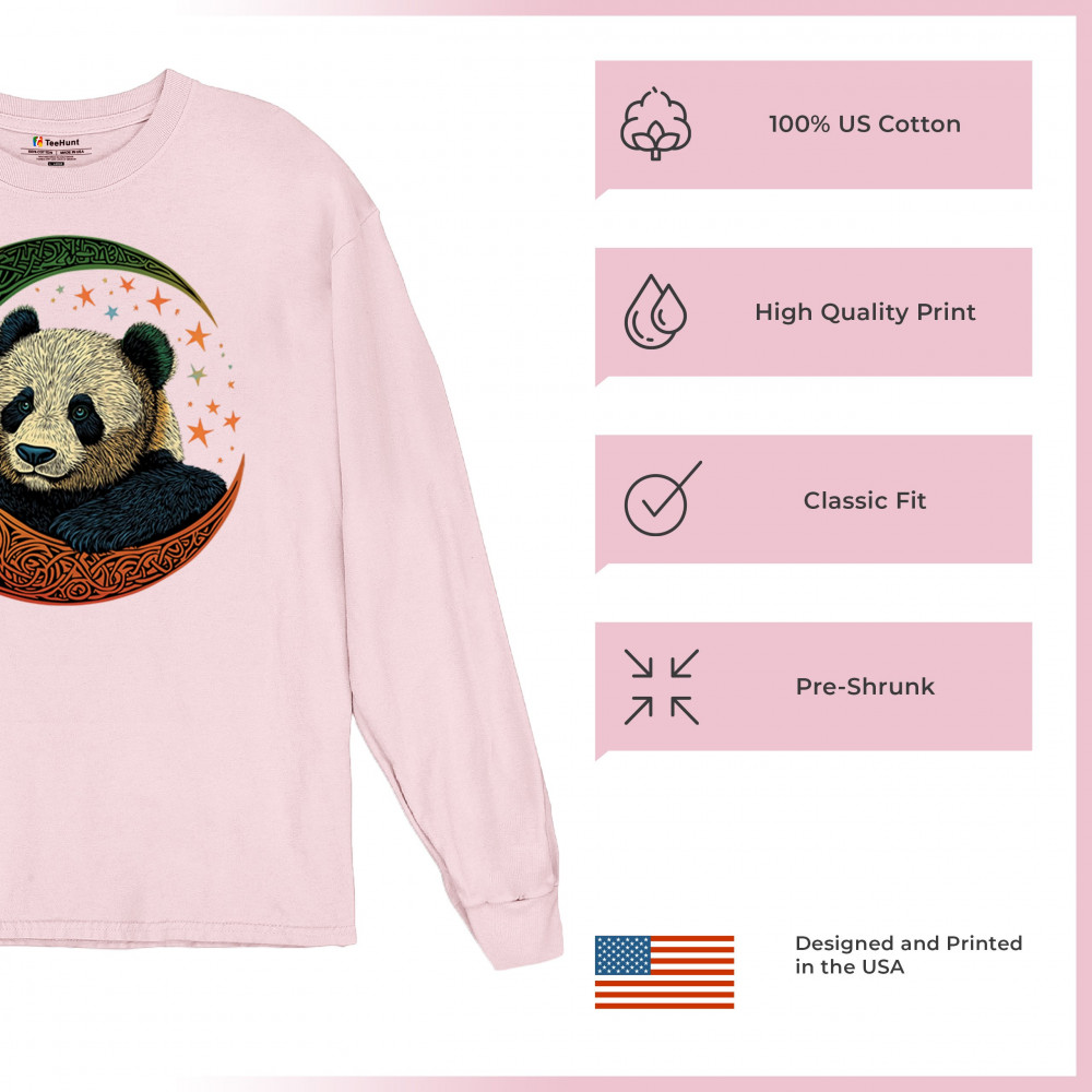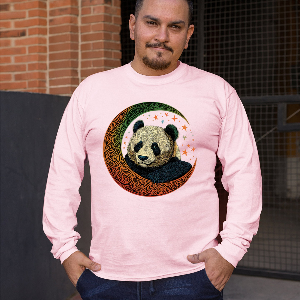 Peaceful panda in Celtic crescent moon design—symbol of harmony, balance, and spiritual calm for nature lovers, mystics, and gentle souls.