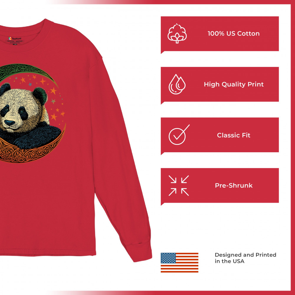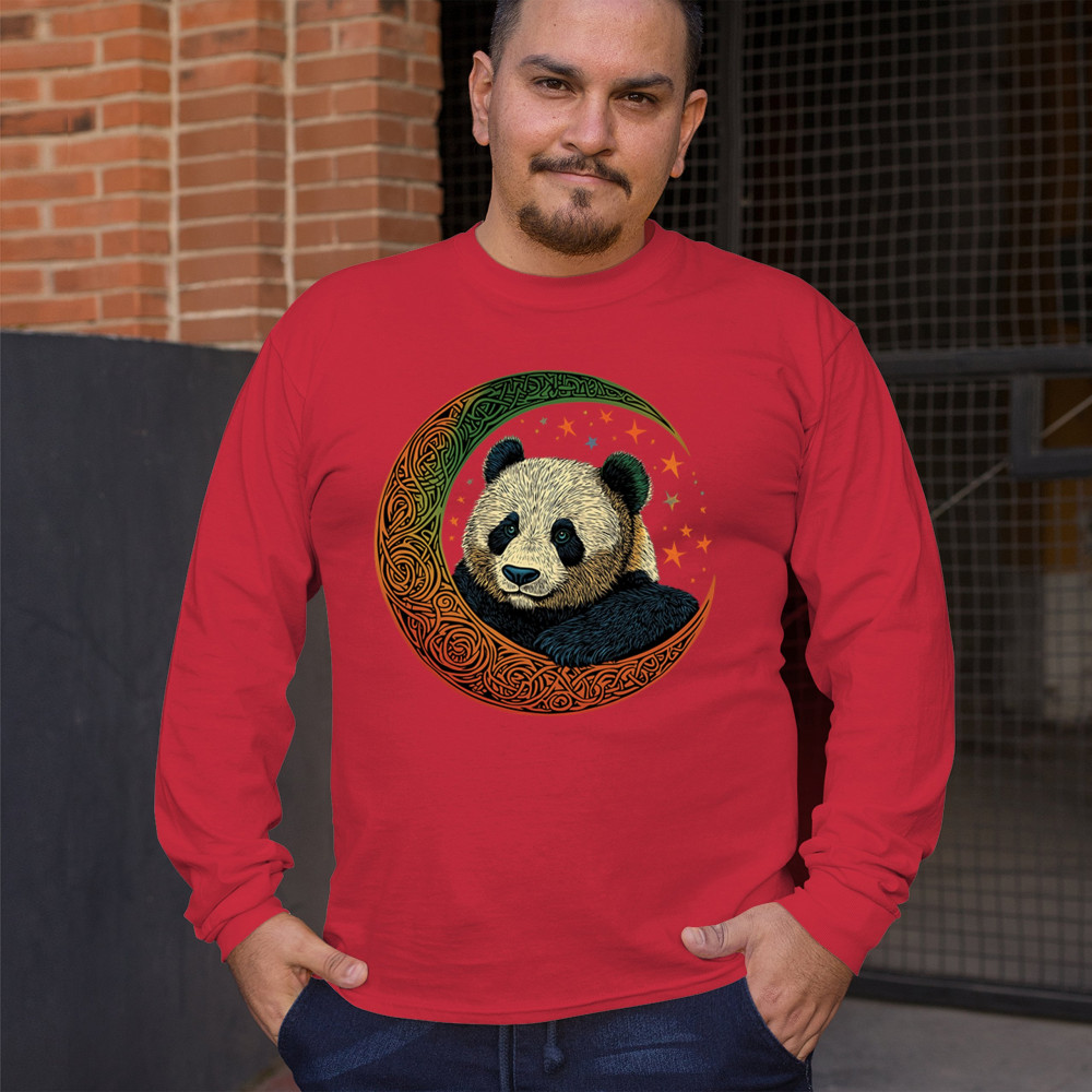 Peaceful panda in Celtic crescent moon design—symbol of harmony, balance, and spiritual calm for nature lovers, mystics, and gentle souls.