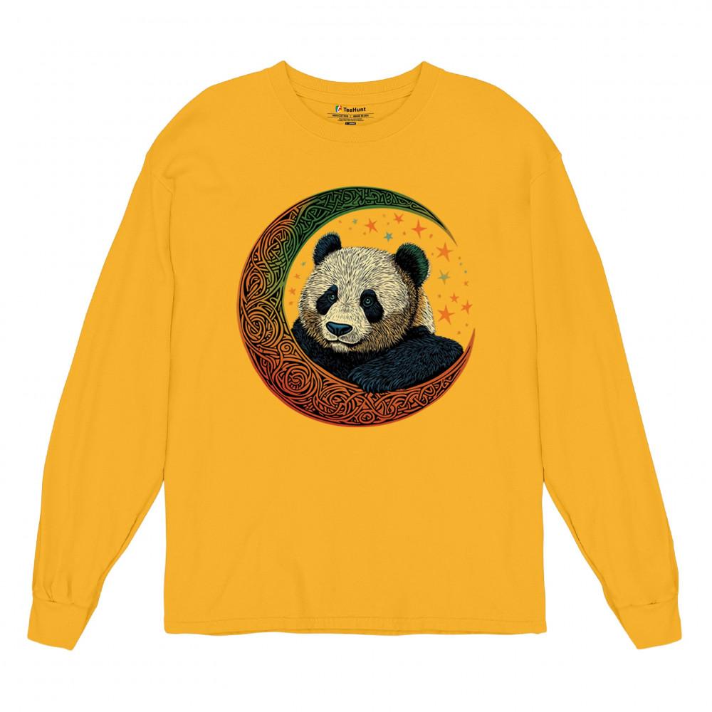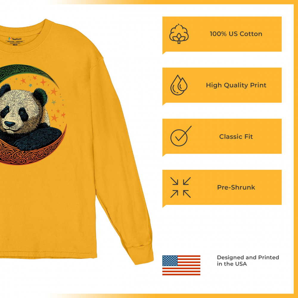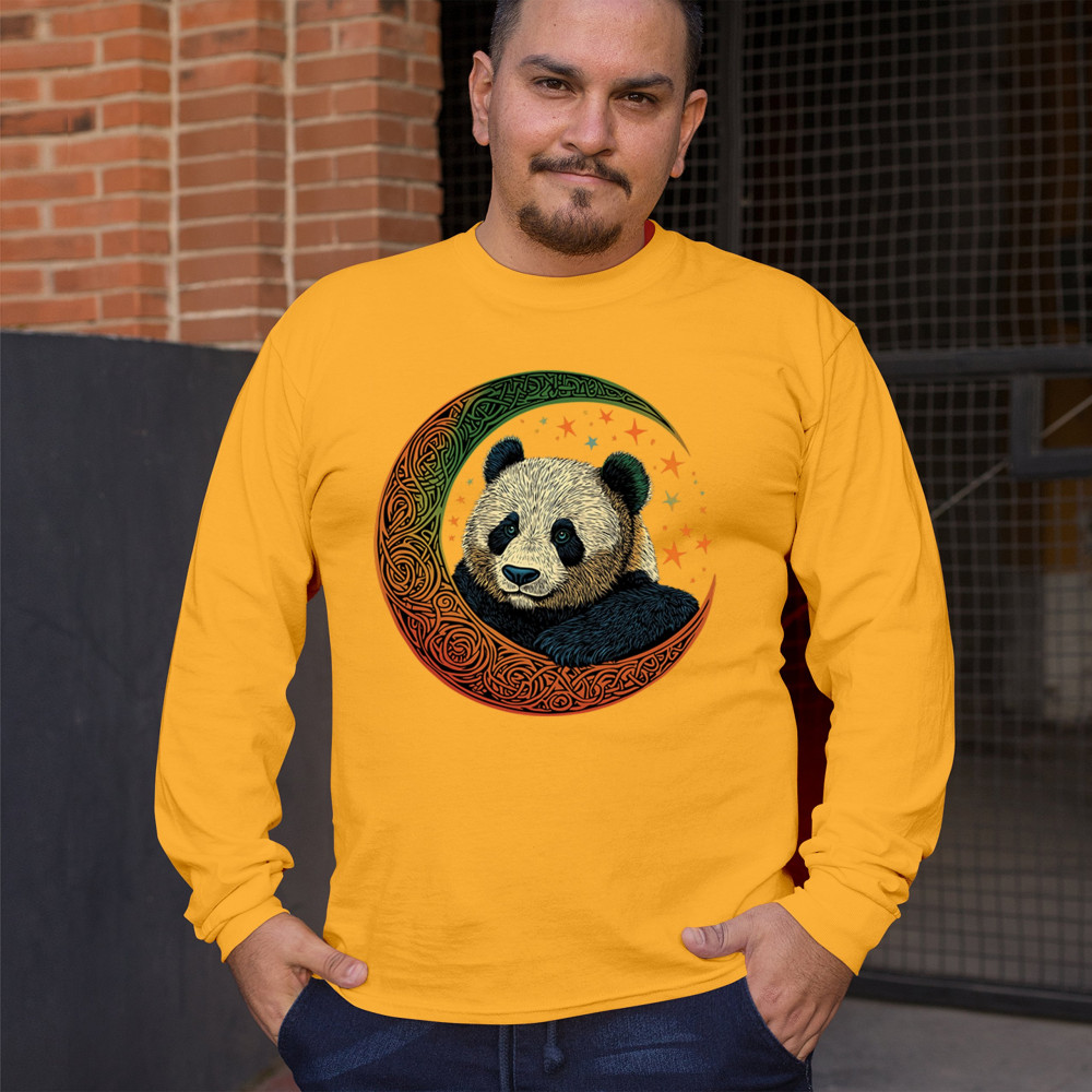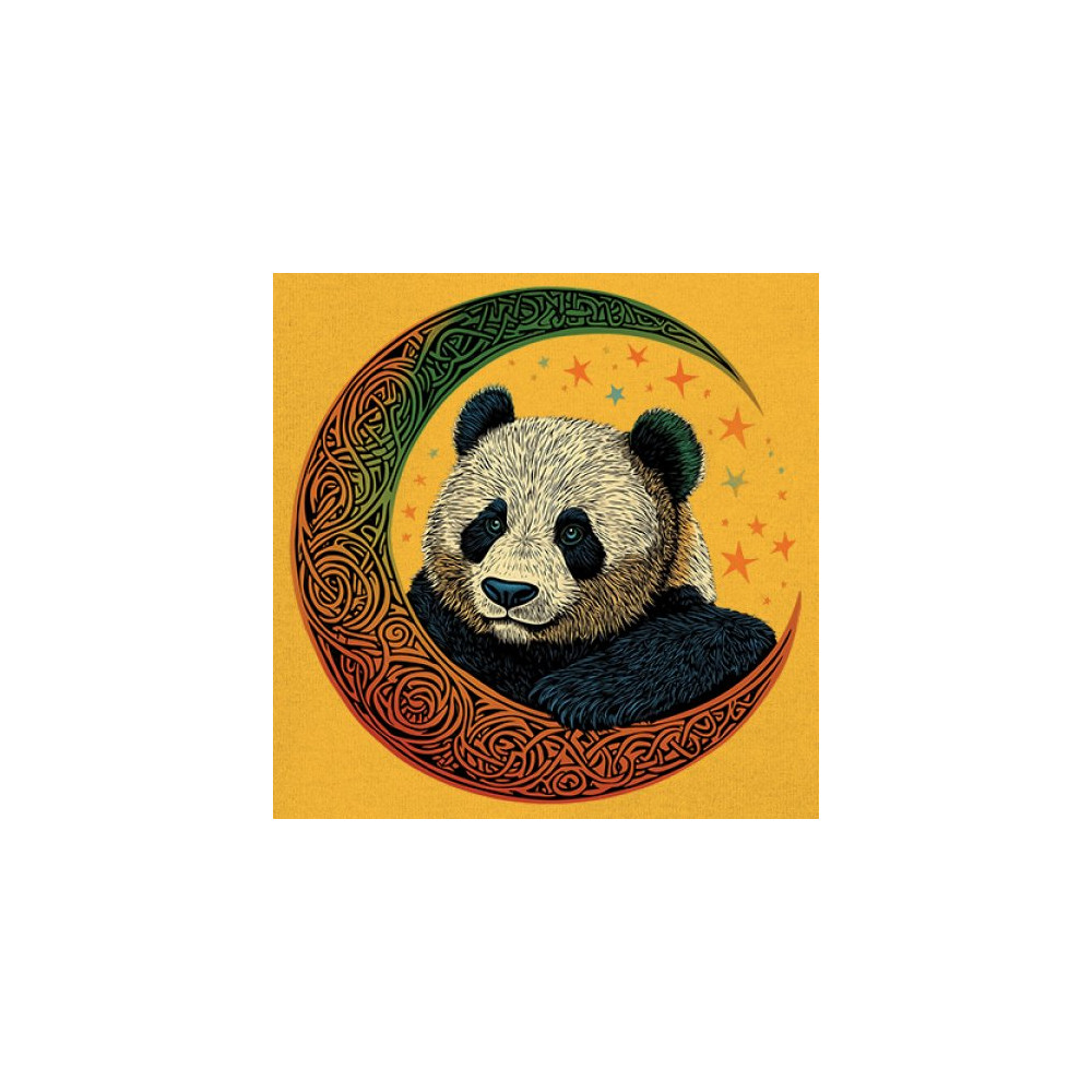 Peaceful panda in Celtic crescent moon design—symbol of harmony, balance, and spiritual calm for nature lovers, mystics, and gentle souls.
