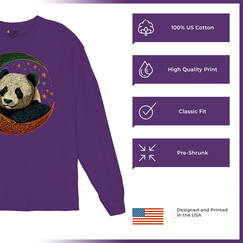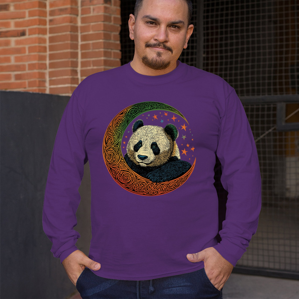 Peaceful panda in Celtic crescent moon design—symbol of harmony, balance, and spiritual calm for nature lovers, mystics, and gentle souls.