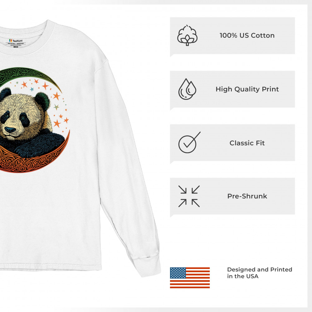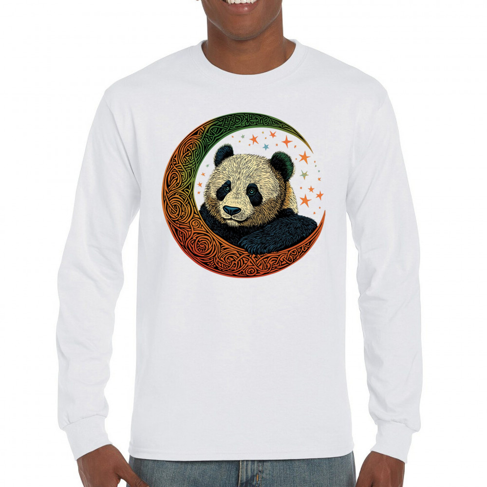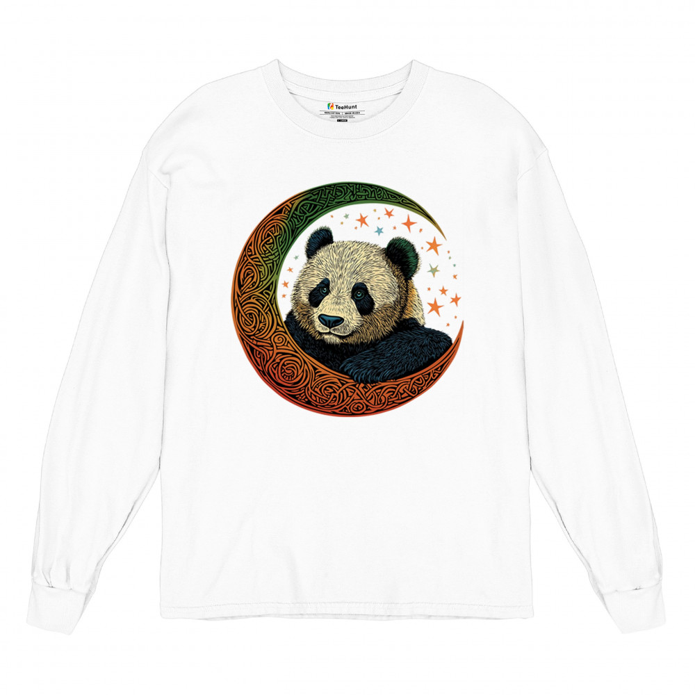 Peaceful panda in Celtic crescent moon design—symbol of harmony, balance, and spiritual calm for nature lovers, mystics, and gentle souls.