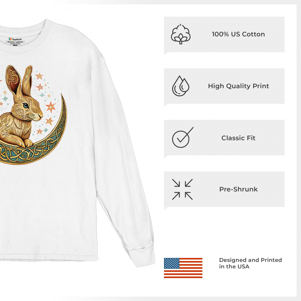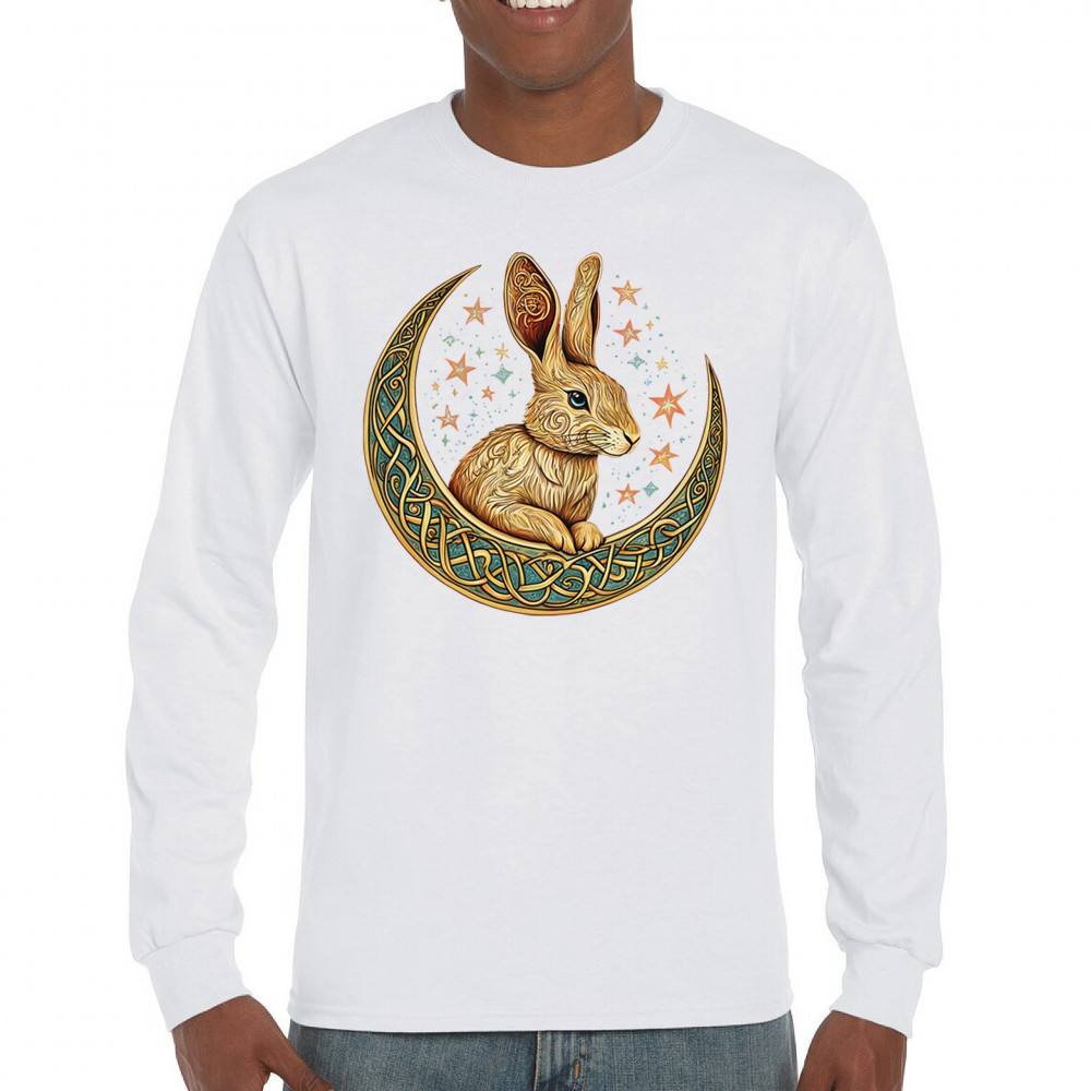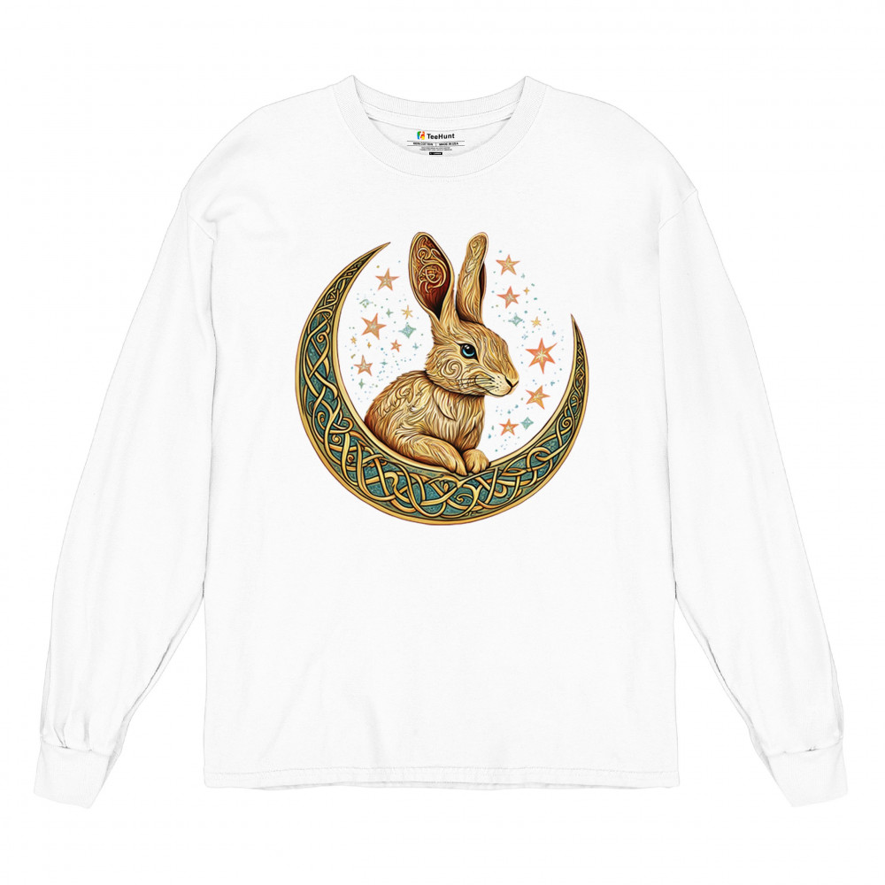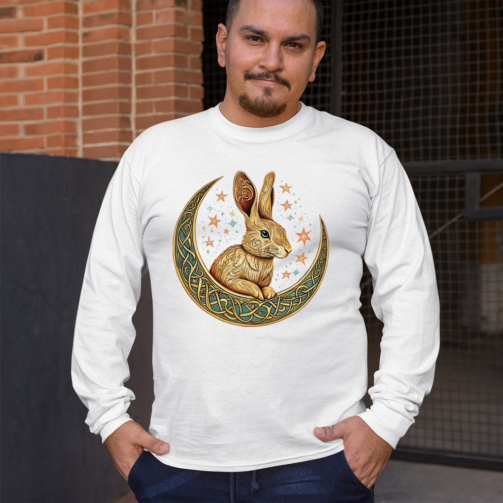Mystical rabbit in Celtic moon—symbolizing intuition, rebirth, and spring energy. Ideal for fantasy lovers, mystics, and nature fans.