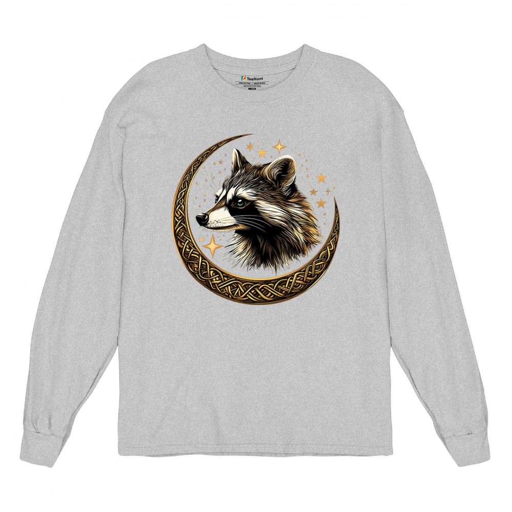Cosmic raccoon design in Celtic moon. Symbol of adaptability, mystery, and spiritual intelligence. A perfect gift for wild and curious souls.
