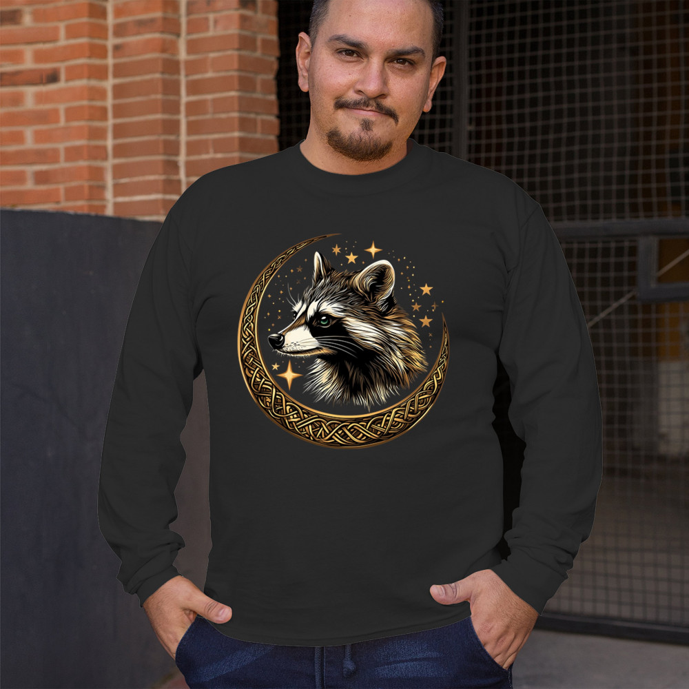 CELTIC MOON RACCOON long sleeve t-shirt mystical forest bandit spiritual nordic black