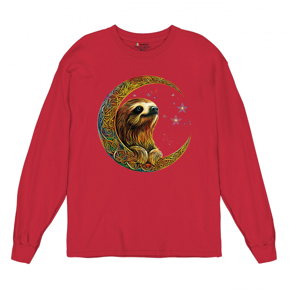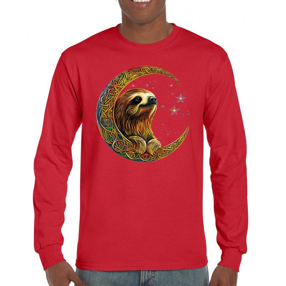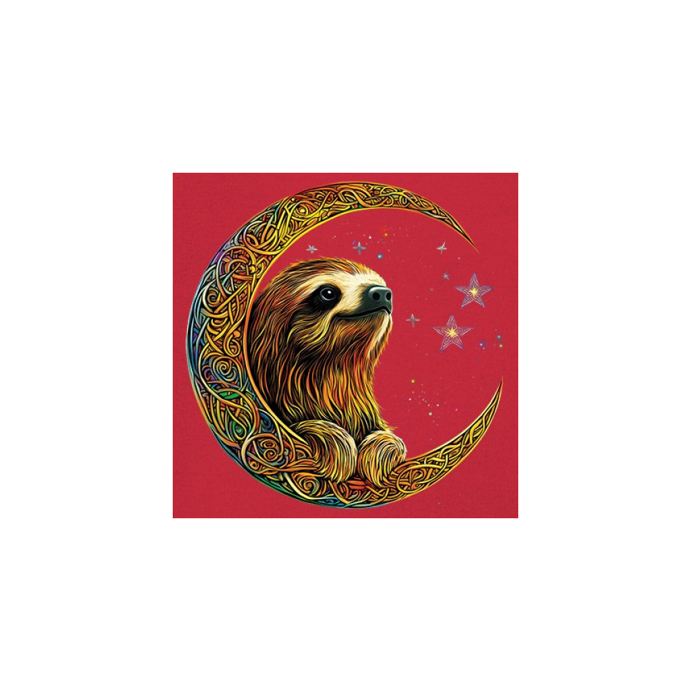 Celebrate peace and presence with this stunning sloth design cradled in a gold Celtic crescent moon. Surrounded by a vibrant starry sky, the image blends jungle whimsy with tribal patterns and mystical vibes. A perfect design for lovers of fantasy animals, mindfulness, and slow living. A beautiful tribute to spiritual stillness and cosmic calm.