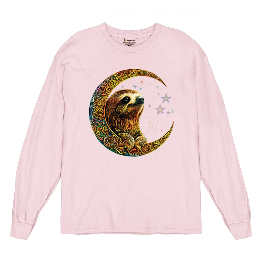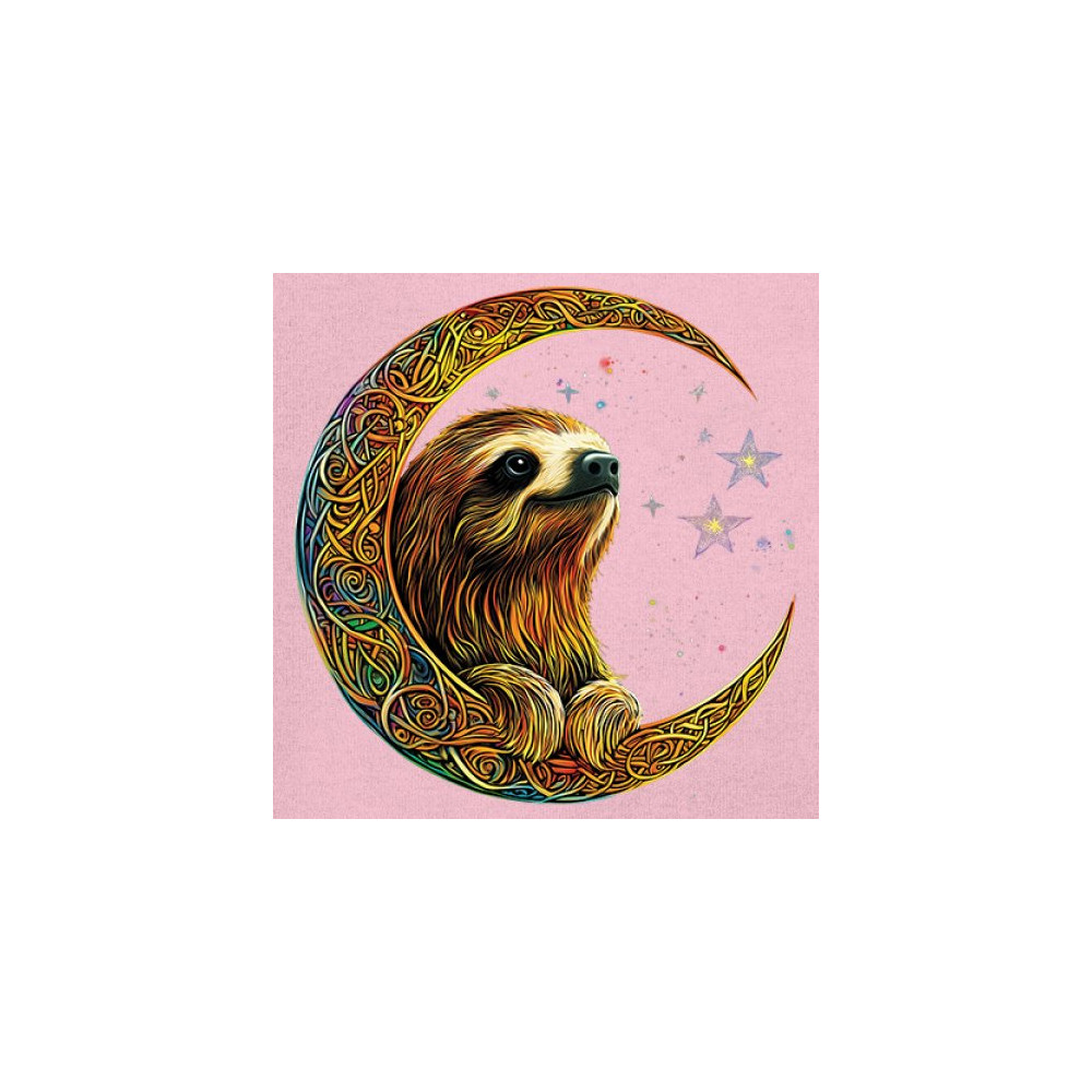Celebrate peace and presence with this stunning sloth design cradled in a gold Celtic crescent moon. Surrounded by a vibrant starry sky, the image blends jungle whimsy with tribal patterns and mystical vibes. A perfect design for lovers of fantasy animals, mindfulness, and slow living. A beautiful tribute to spiritual stillness and cosmic calm.