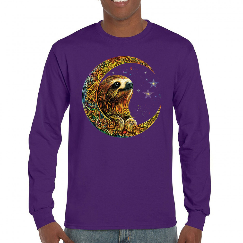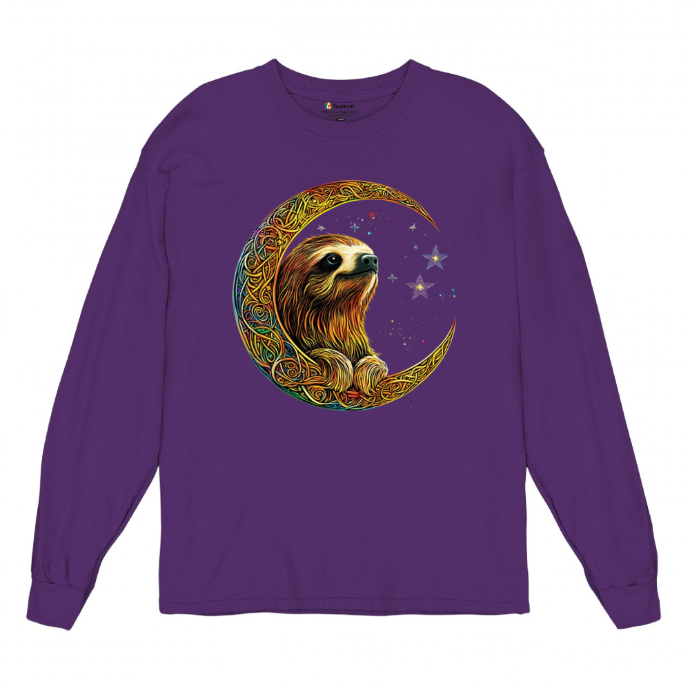 Celebrate peace and presence with this stunning sloth design cradled in a gold Celtic crescent moon. Surrounded by a vibrant starry sky, the image blends jungle whimsy with tribal patterns and mystical vibes. A perfect design for lovers of fantasy animals, mindfulness, and slow living. A beautiful tribute to spiritual stillness and cosmic calm.