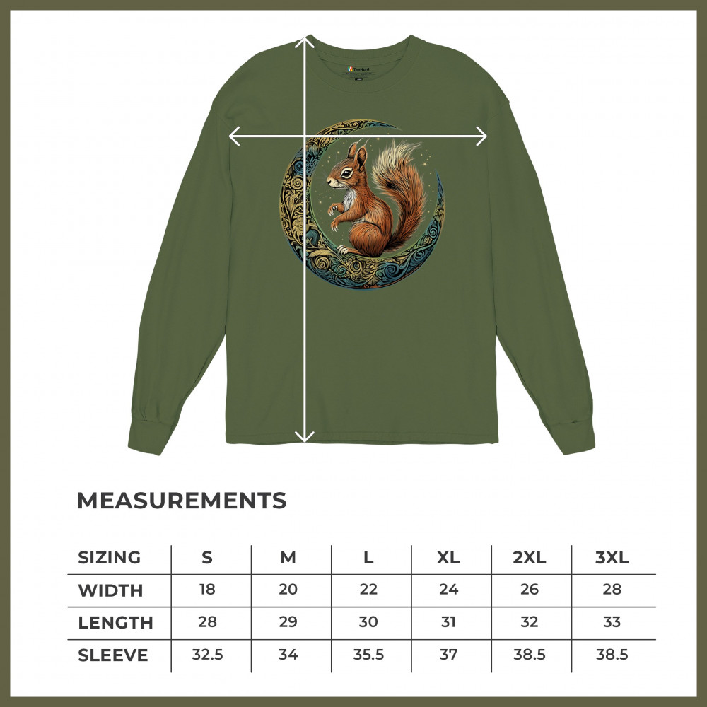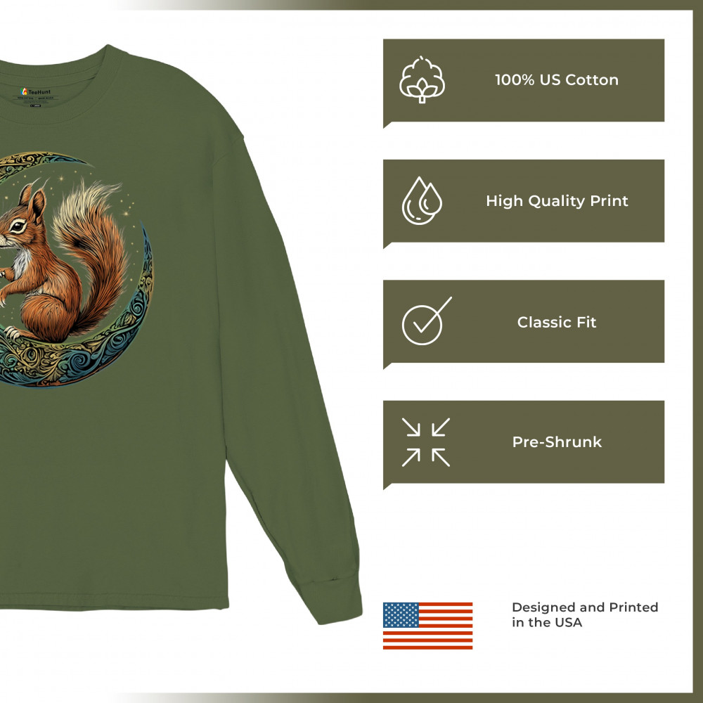 Celebrate agility, awareness, and forest wisdom with this magical red squirrel design. Nestled in a green-gold Celtic crescent moon and backed by a starry cosmic sky, this piece merges natural energy with tribal patterns and celestial wonder. A unique design for animal spirit believers, forest wanderers, and fantasy nature fans.