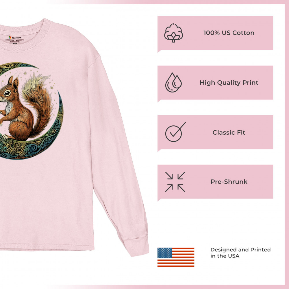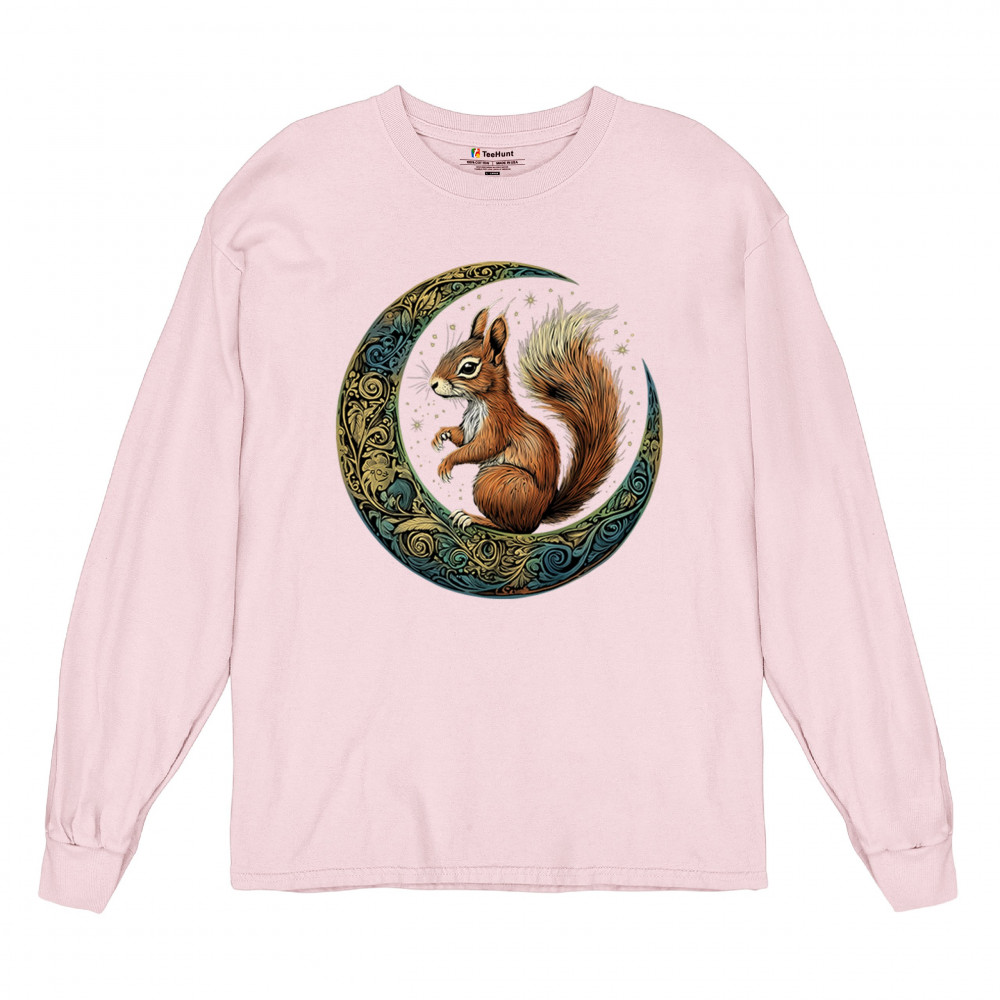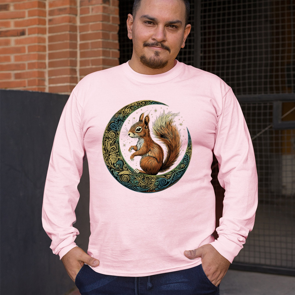 Celebrate agility, awareness, and forest wisdom with this magical red squirrel design. Nestled in a green-gold Celtic crescent moon and backed by a starry cosmic sky, this piece merges natural energy with tribal patterns and celestial wonder. A unique design for animal spirit believers, forest wanderers, and fantasy nature fans.