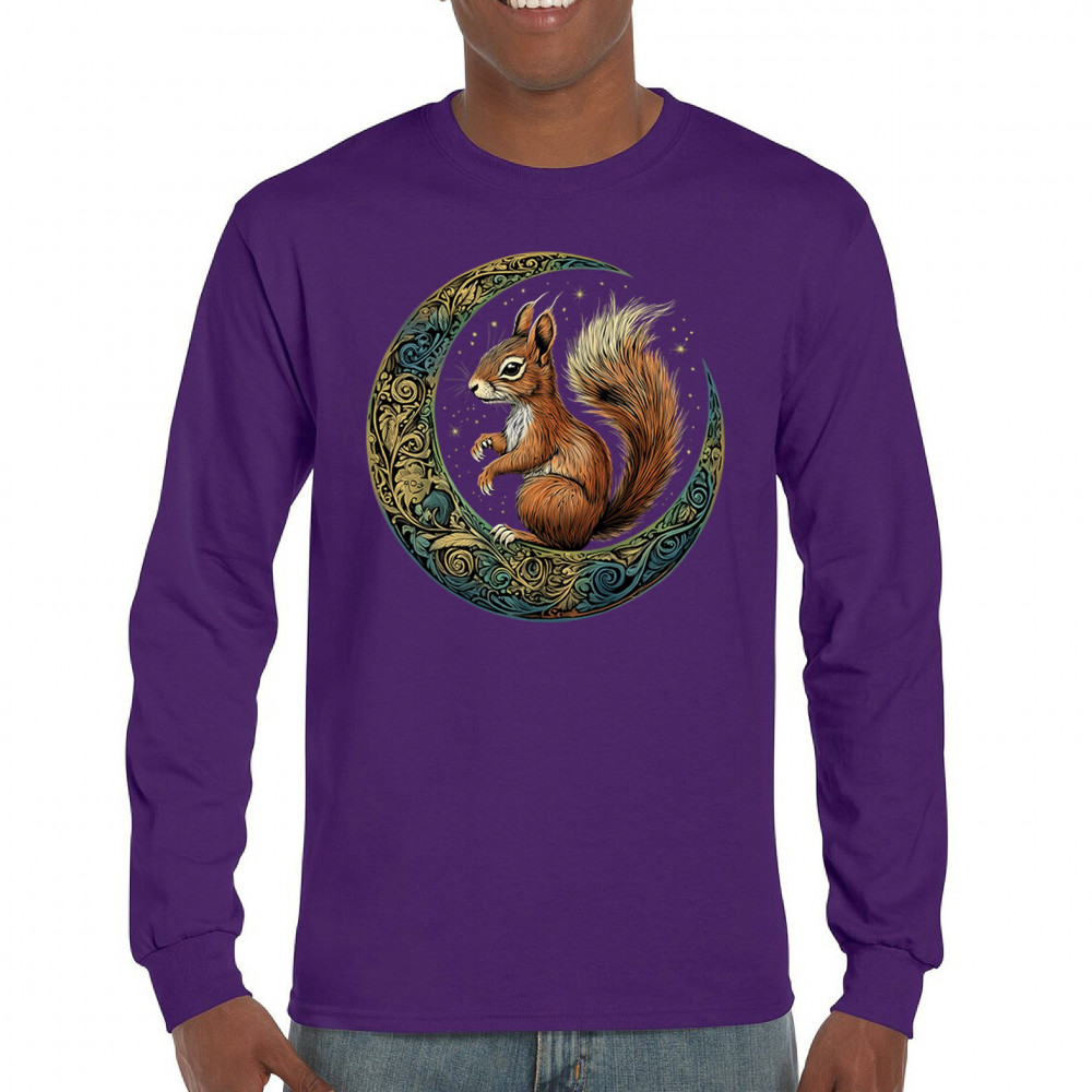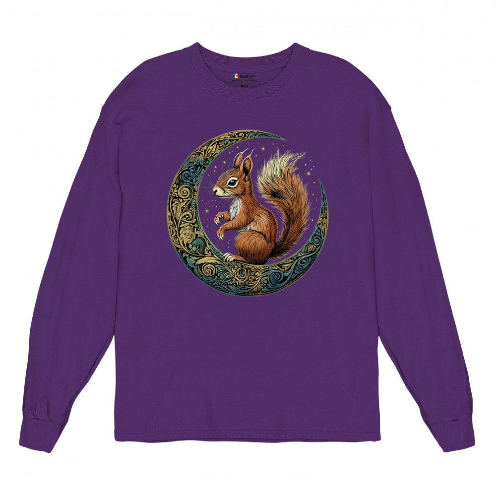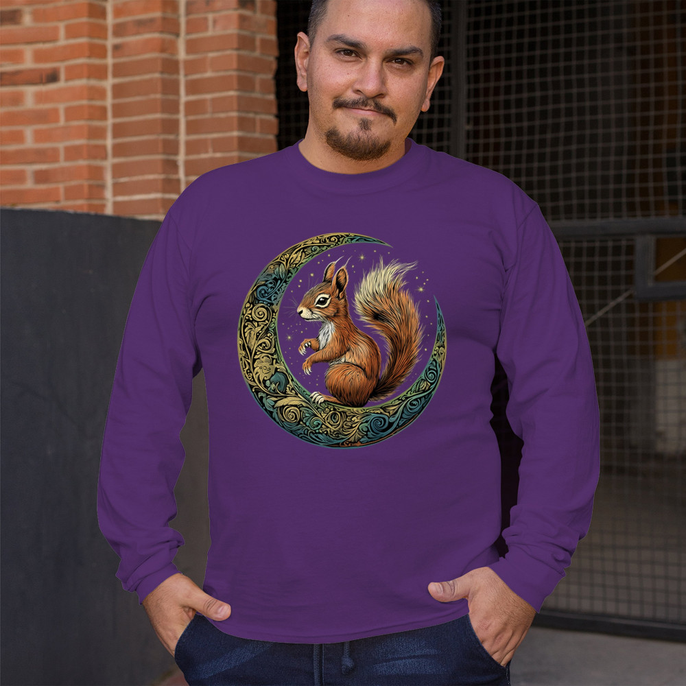 Celebrate agility, awareness, and forest wisdom with this magical red squirrel design. Nestled in a green-gold Celtic crescent moon and backed by a starry cosmic sky, this piece merges natural energy with tribal patterns and celestial wonder. A unique design for animal spirit believers, forest wanderers, and fantasy nature fans.
