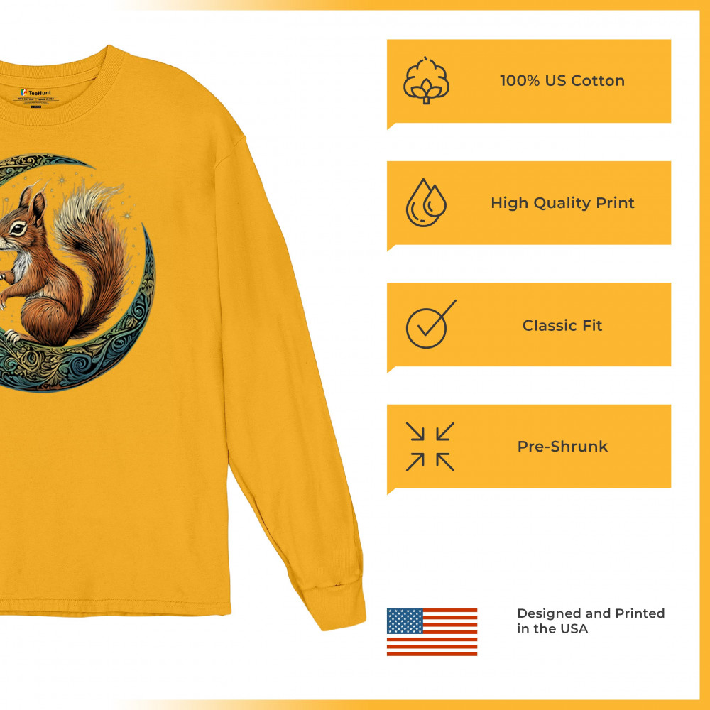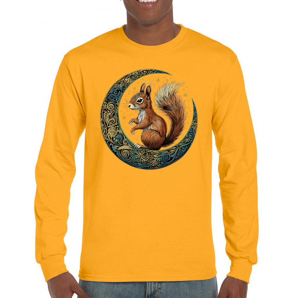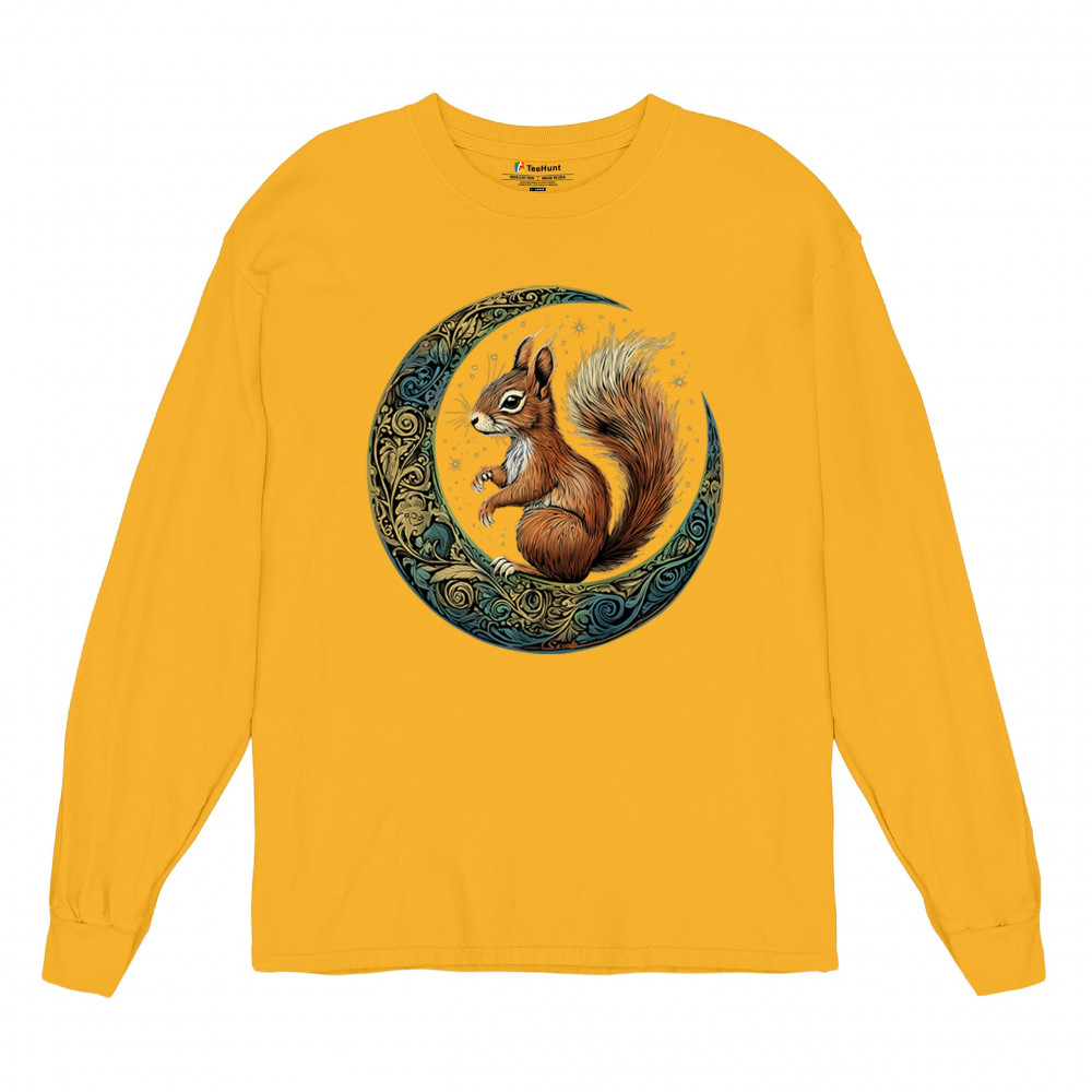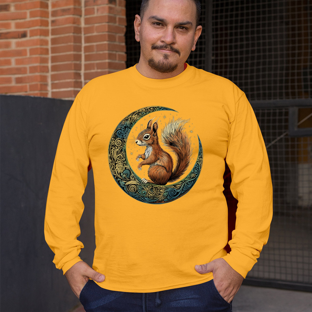Celebrate agility, awareness, and forest wisdom with this magical red squirrel design. Nestled in a green-gold Celtic crescent moon and backed by a starry cosmic sky, this piece merges natural energy with tribal patterns and celestial wonder. A unique design for animal spirit believers, forest wanderers, and fantasy nature fans.