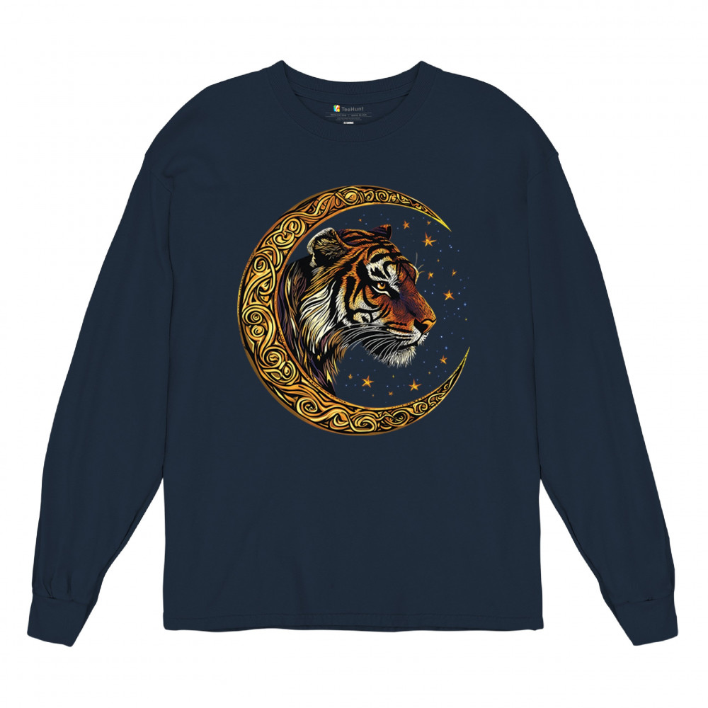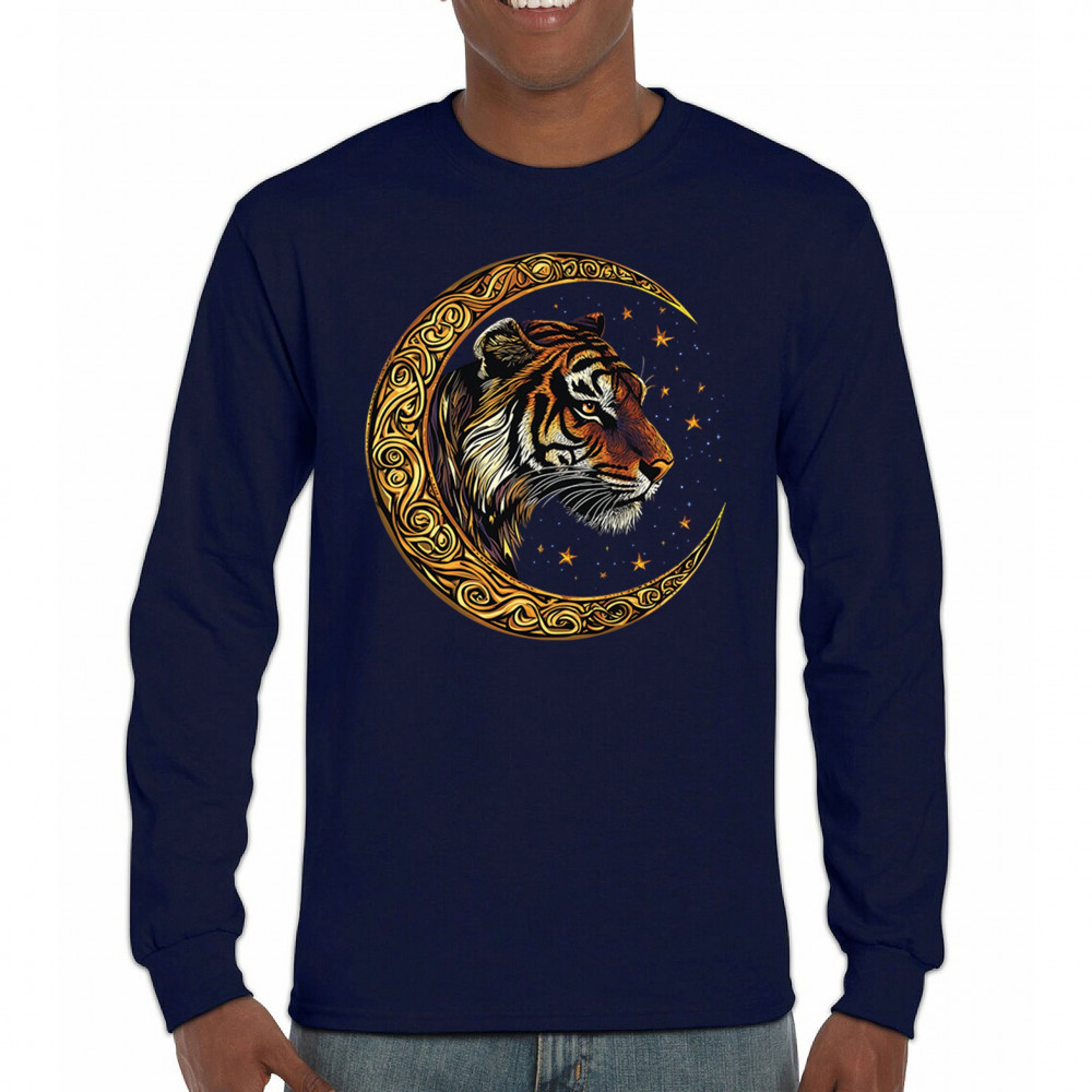 Bold tiger design in Celtic moon with cosmic sky. Symbol of strength, instinct, and jungle mysticism. Great for animal lovers and fantasy fans.