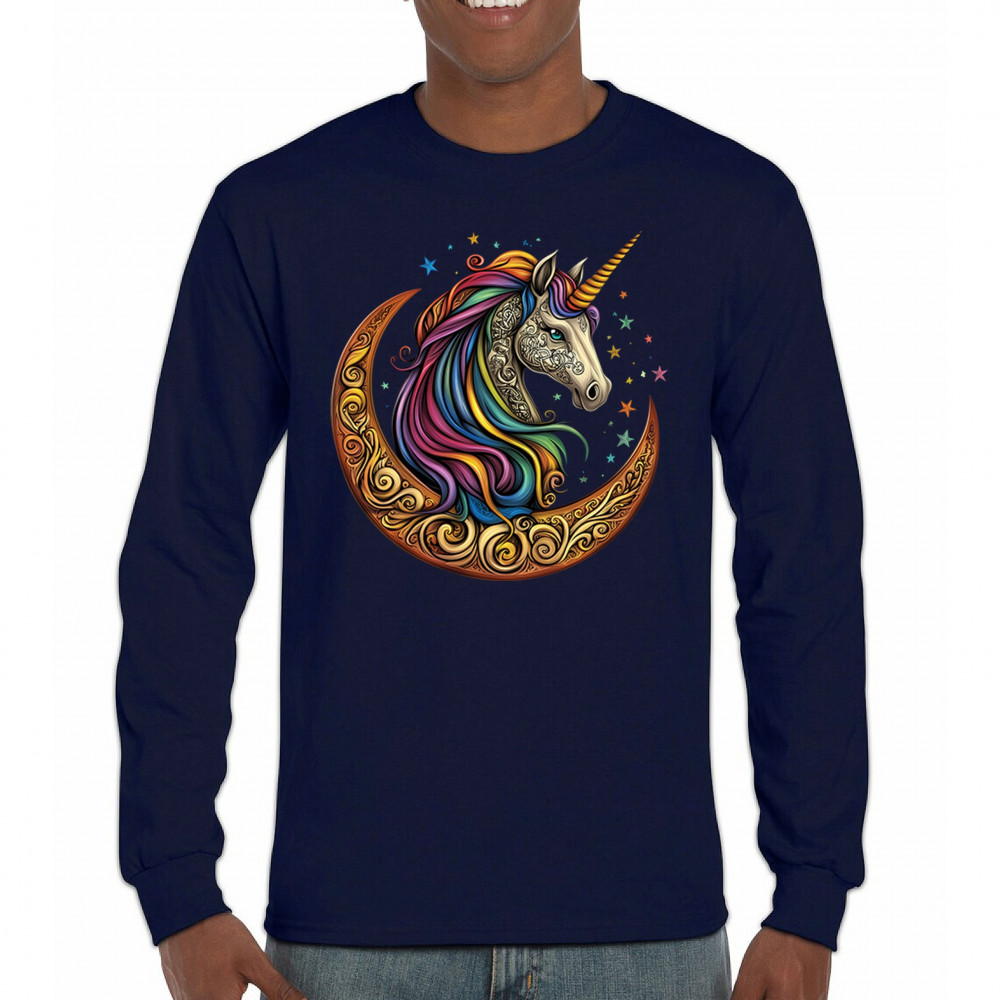 Rainbow-maned unicorn in golden Celtic moon design—perfect for fantasy lovers, dreamers, and unicorn fans who believe in magic and spirit.