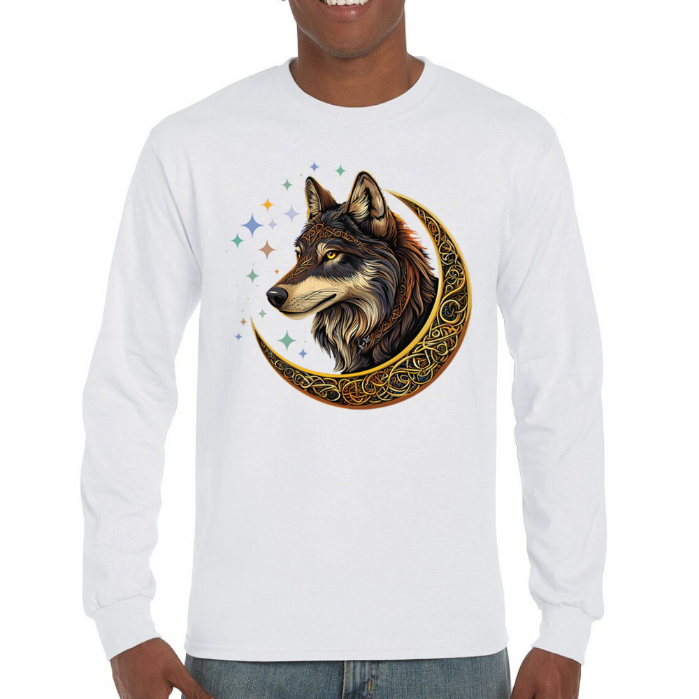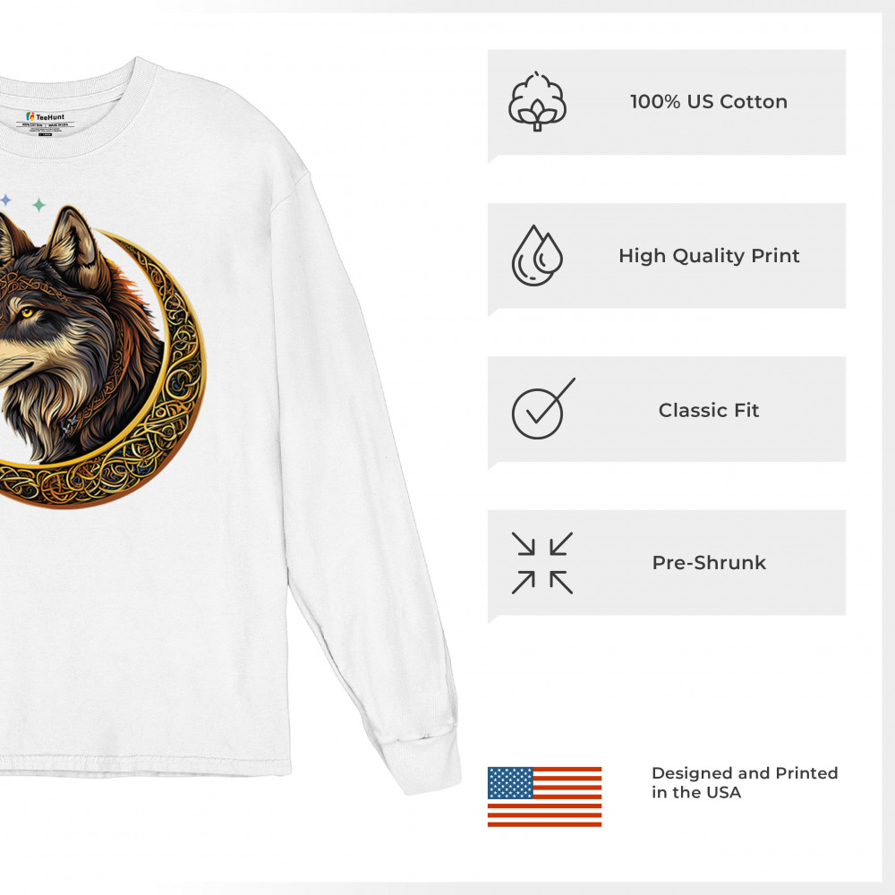 Celtic wolf design in a glowing crescent moon. Symbolizes loyalty, mysticism, and wild energy. Great for fantasy fans and spirit animal seekers.