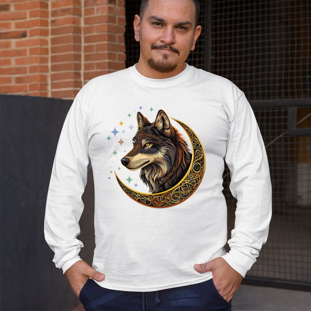 Powerful and wise, this Celtic wolf design is surrounded by a glowing golden crescent moon and cosmic stars. A symbol of loyalty, intuition, and spiritual guidance, this design is perfect for wolf lovers, fantasy fans, and tribal art enthusiasts. A bold celebration of wilderness mysticism and soul-deep strength.