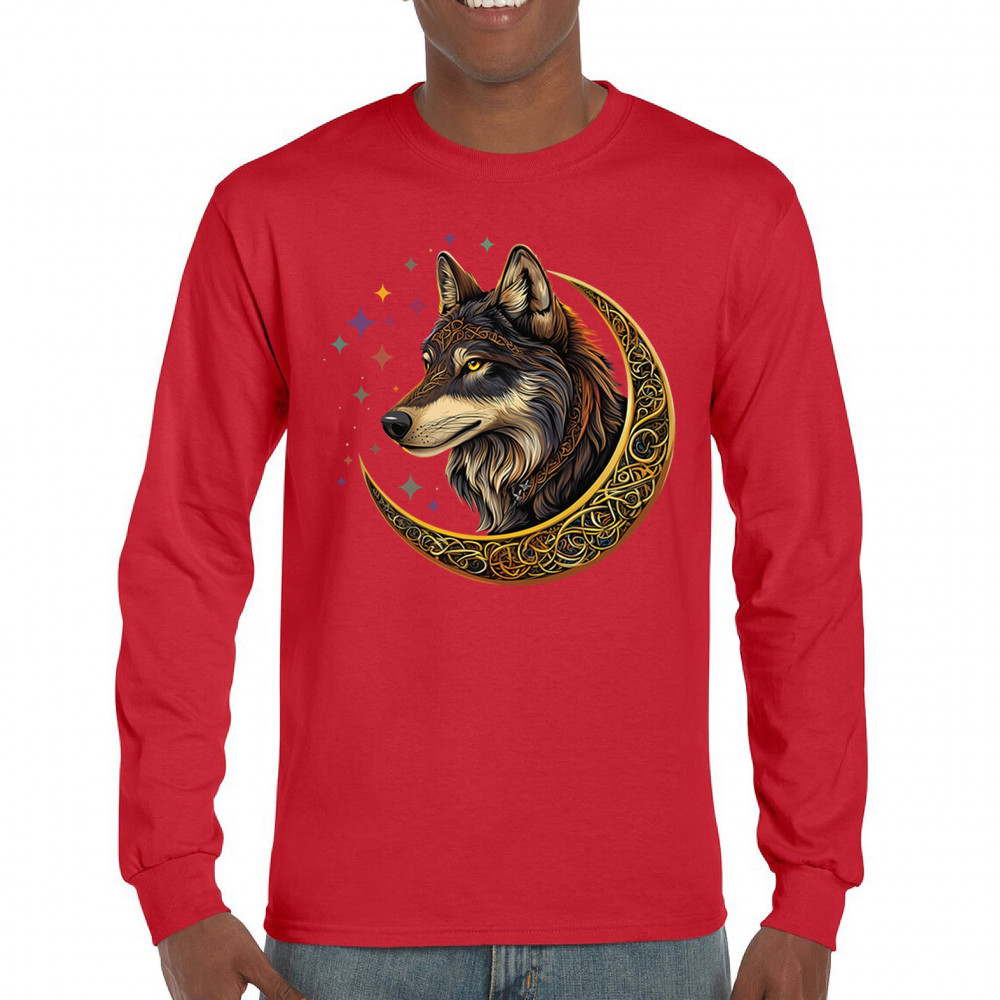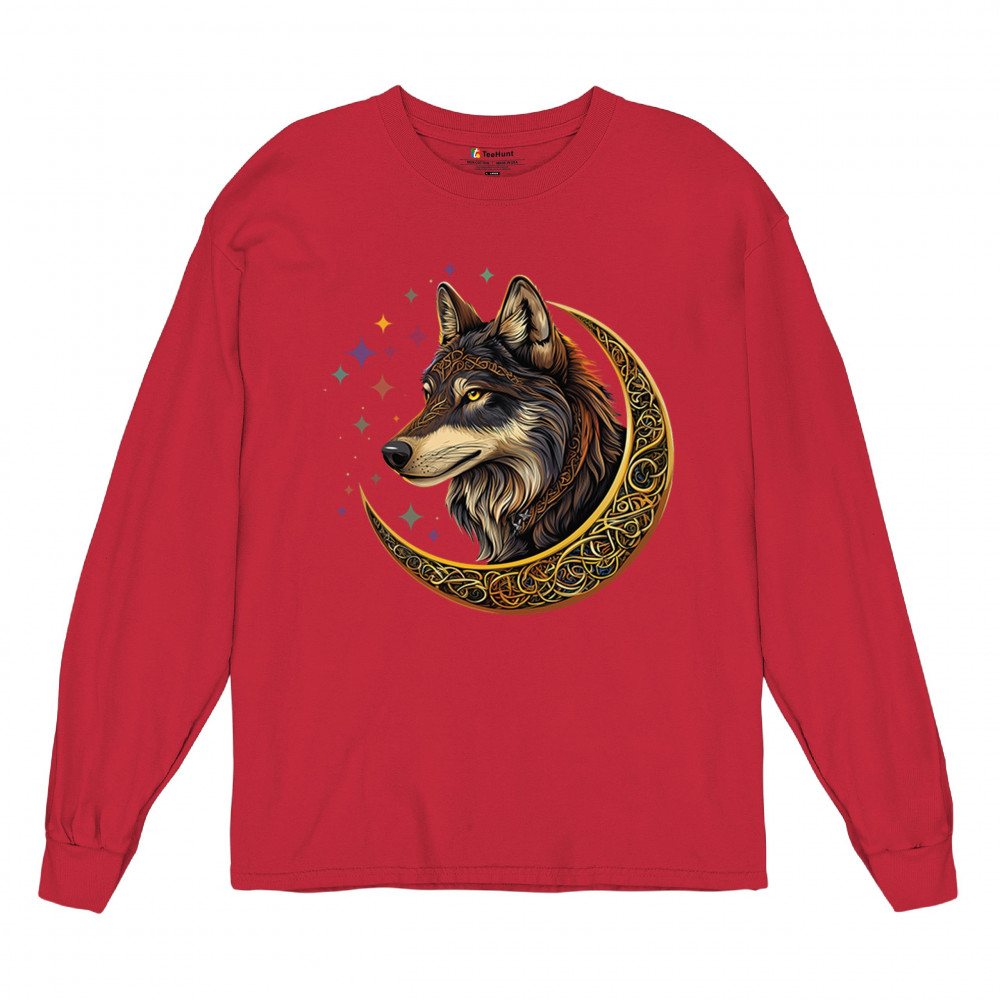 Celtic wolf design in a glowing crescent moon. Symbolizes loyalty, mysticism, and wild energy. Great for fantasy fans and spirit animal seekers.