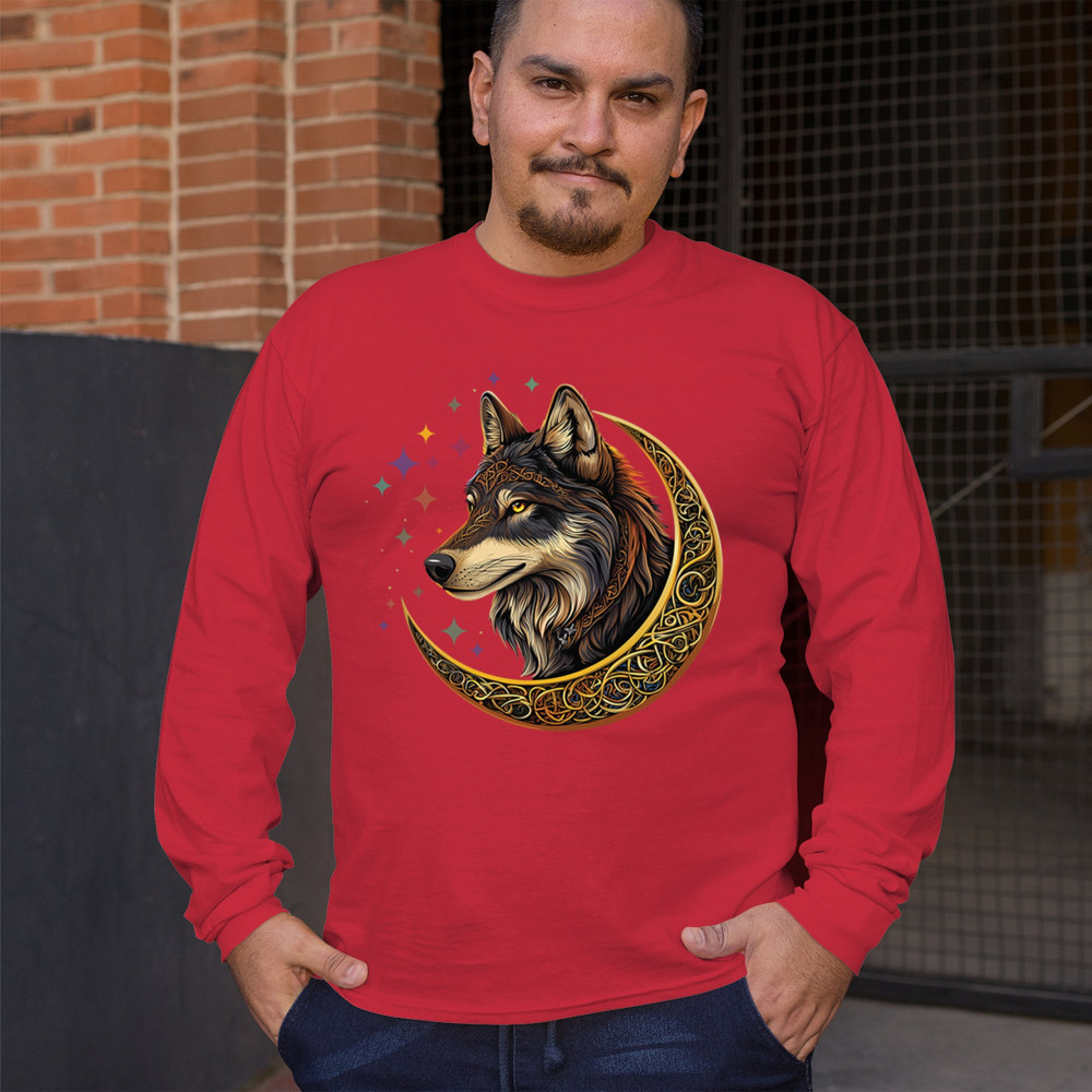 Powerful and wise, this Celtic wolf design is surrounded by a glowing golden crescent moon and cosmic stars. A symbol of loyalty, intuition, and spiritual guidance, this design is perfect for wolf lovers, fantasy fans, and tribal art enthusiasts. A bold celebration of wilderness mysticism and soul-deep strength.