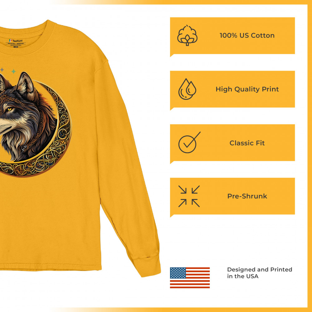 Celtic wolf design in a glowing crescent moon. Symbolizes loyalty, mysticism, and wild energy. Great for fantasy fans and spirit animal seekers.