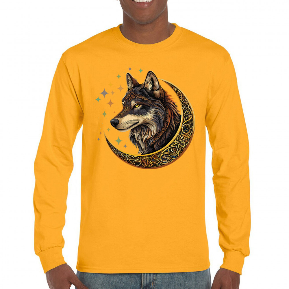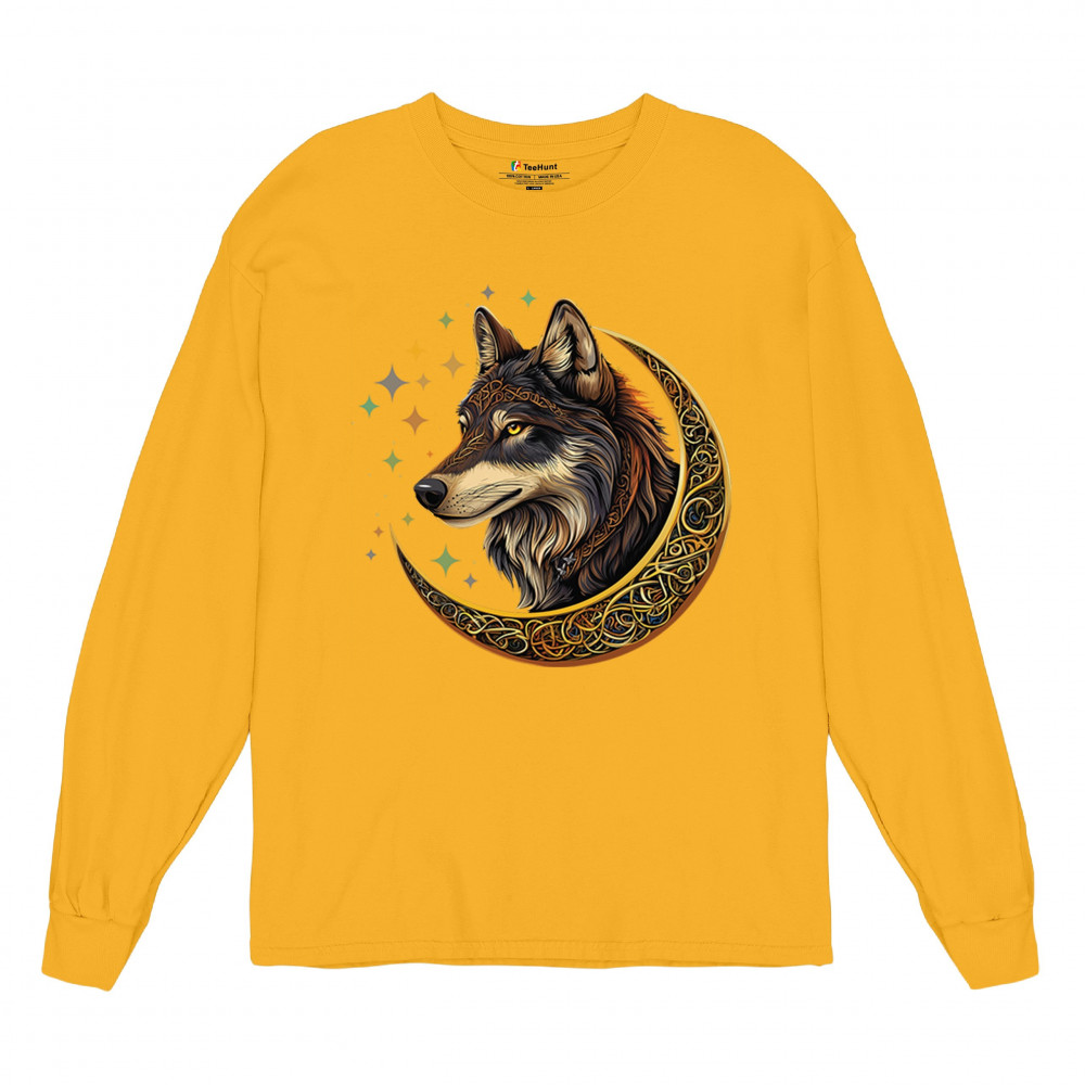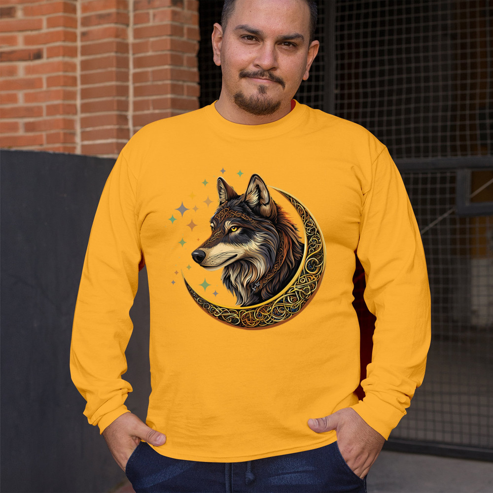 Powerful and wise, this Celtic wolf design is surrounded by a glowing golden crescent moon and cosmic stars. A symbol of loyalty, intuition, and spiritual guidance, this design is perfect for wolf lovers, fantasy fans, and tribal art enthusiasts. A bold celebration of wilderness mysticism and soul-deep strength.