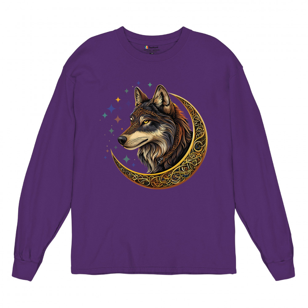 Celtic wolf design in a glowing crescent moon. Symbolizes loyalty, mysticism, and wild energy. Great for fantasy fans and spirit animal seekers.
