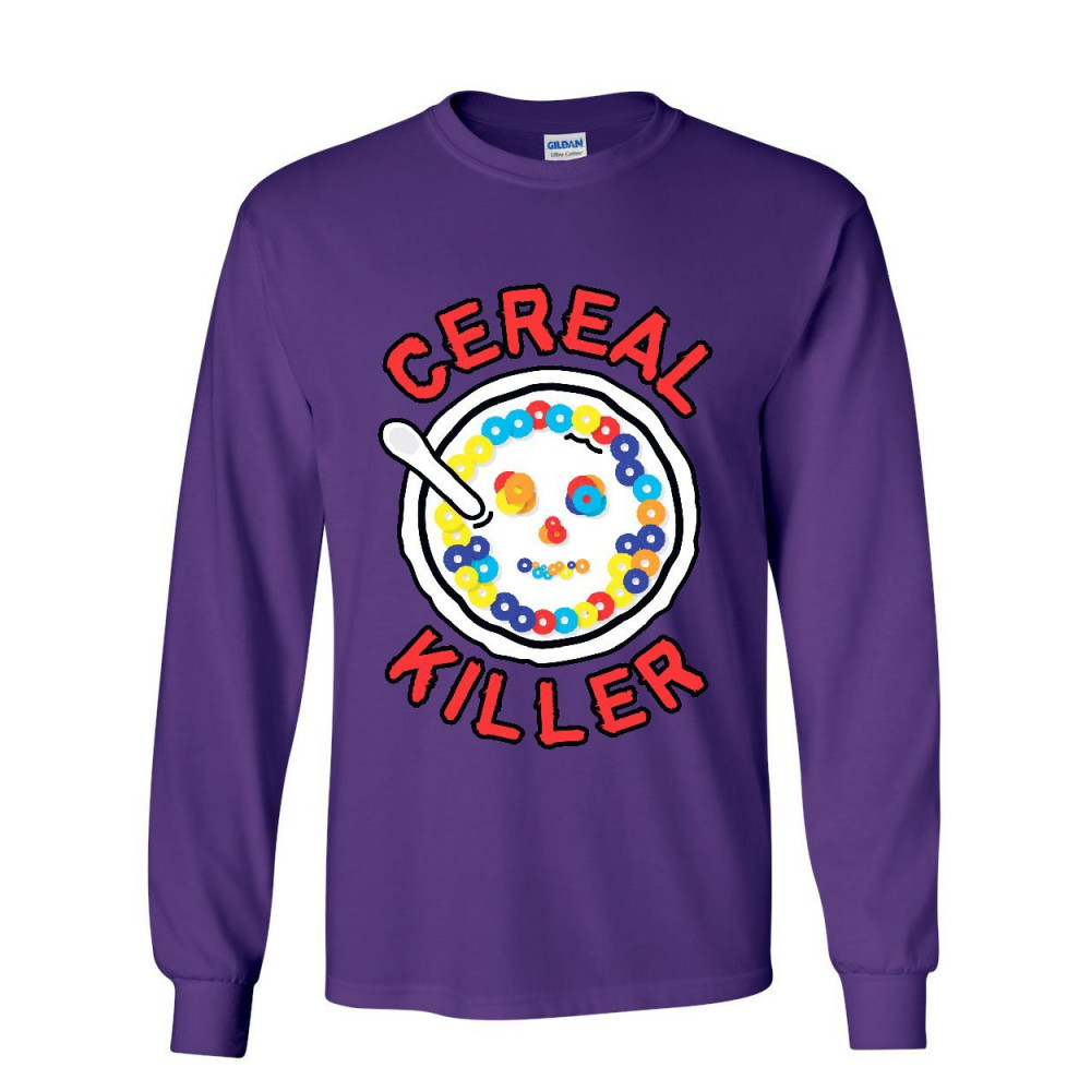 CEREAL KILLER long sleeve t-shirt funny breakfast morning meal serial killer tee purple