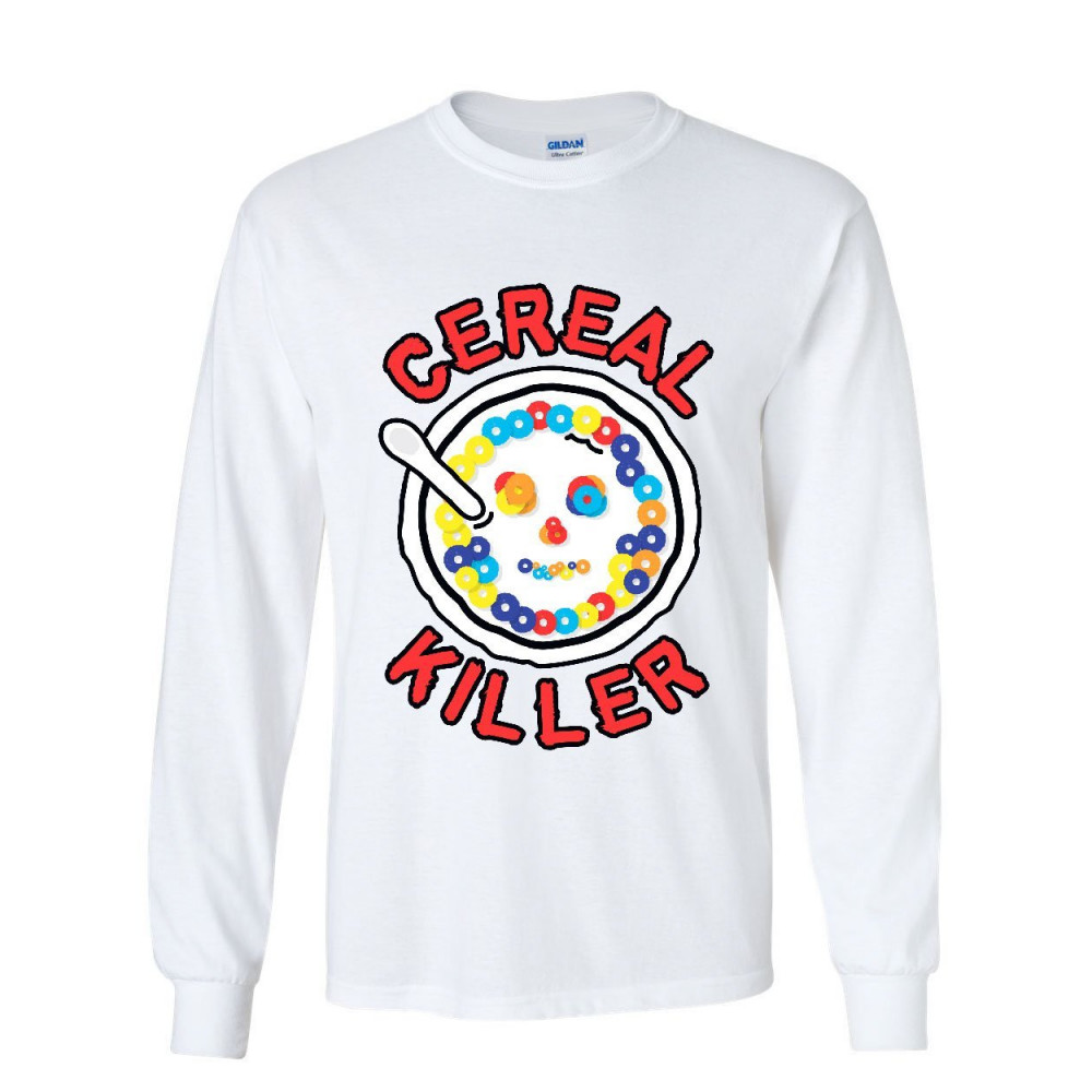 CEREAL KILLER long sleeve t-shirt funny breakfast morning meal serial killer tee white
