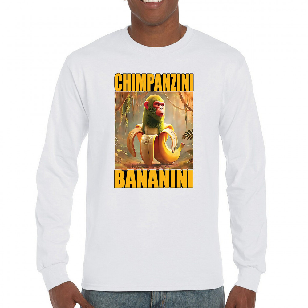 Enter the jungle of Gen Z brainrot with Chimpanzini Bananini—where monkey meets banana in full cursed-core glory. This absurd design blends viral TikTok meme energy, ironic fashion, surreal primate visuals, and weirdcore internet chaos. Built for fans of unhinged humor, animal meme culture, and cursed fashion fits.