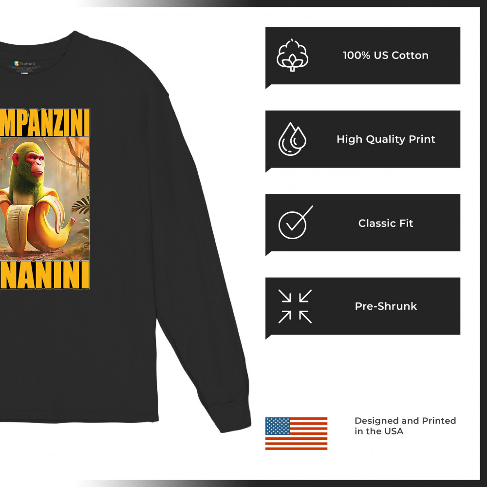 CHAMPANZINI BANANINI long sleeve t-shirt italian brainrot gen z alpha meme black