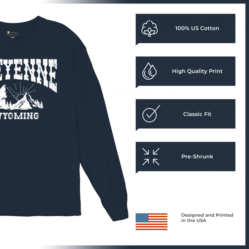 Vintage Cheyenne Wyoming design with mountain sunrise for outdoor lovers and locals. Perfect for travel, hiking, or Western pride.