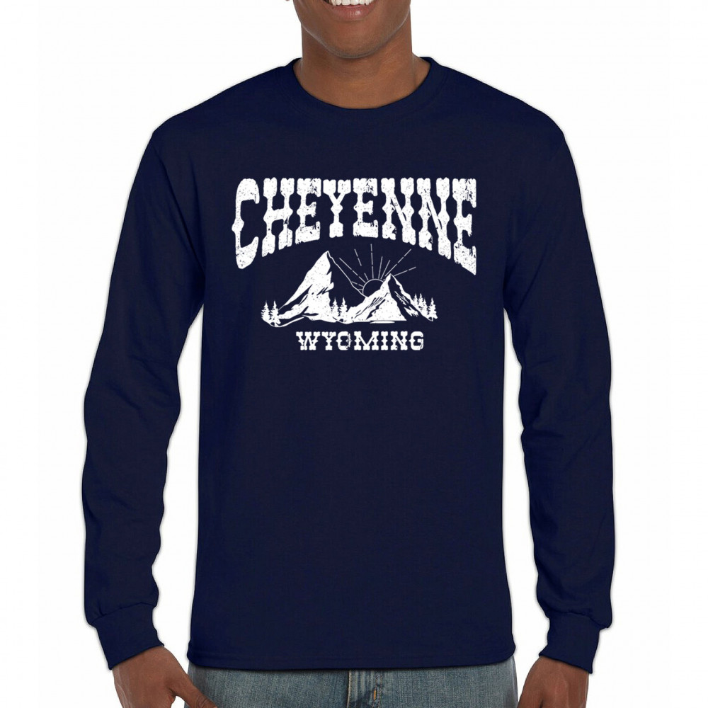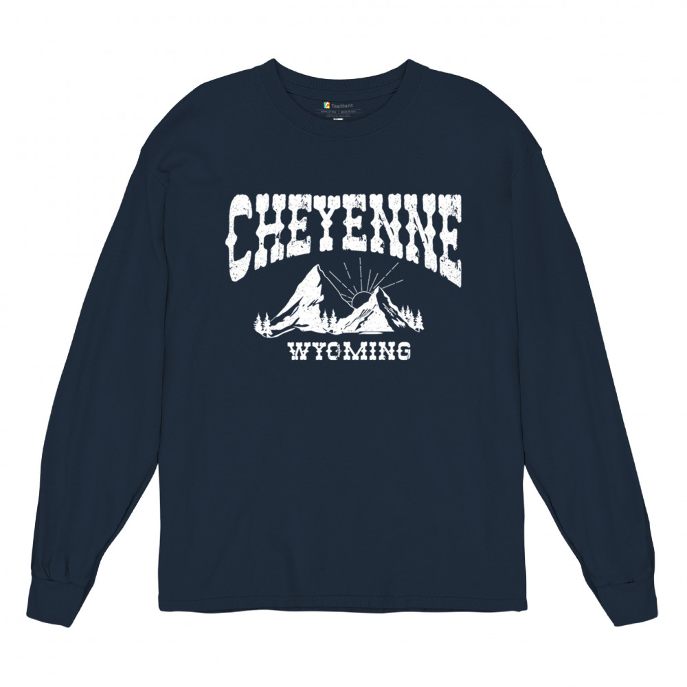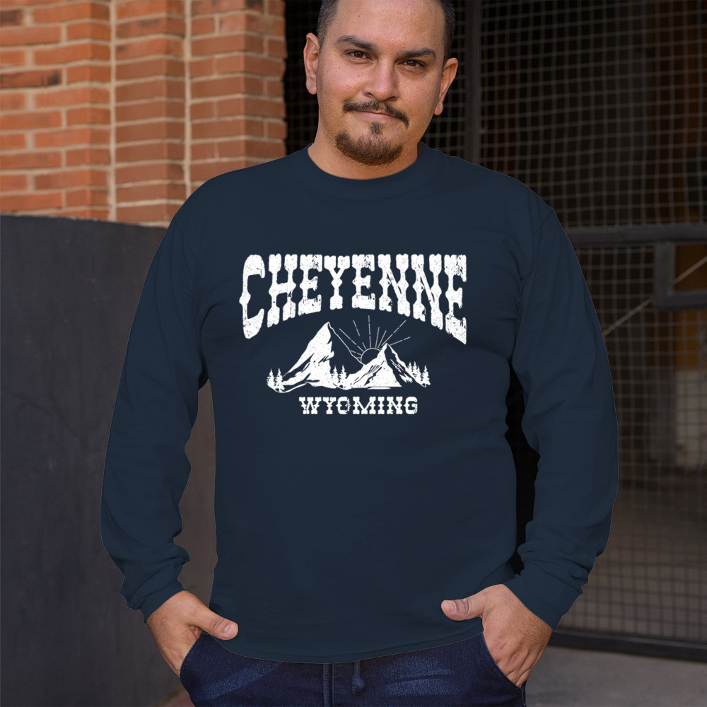 Celebrate Wyoming's beauty with this Cheyenne mountain sunrise design. Featuring vintage-style mountain scenery and Western font, it captures the essence of local pride and rugged outdoor adventure. Perfect for travelers, hikers, or anyone who loves the Western landscape.