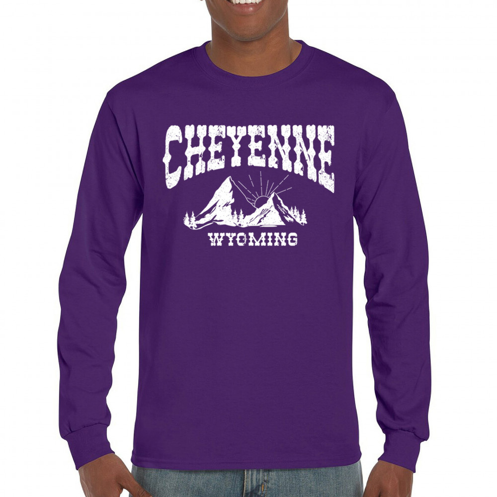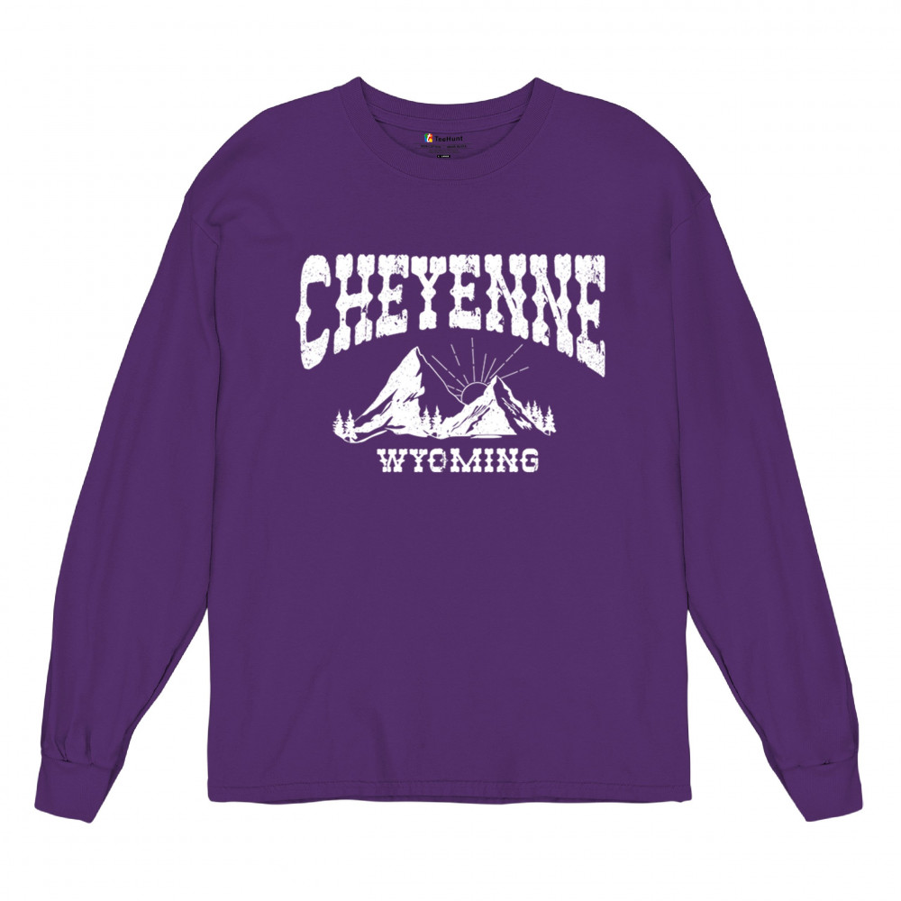 Vintage Cheyenne Wyoming design with mountain sunrise for outdoor lovers and locals. Perfect for travel, hiking, or Western pride.