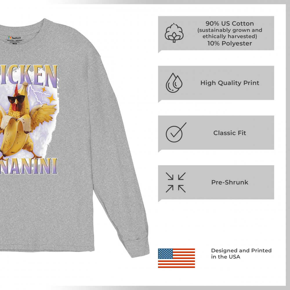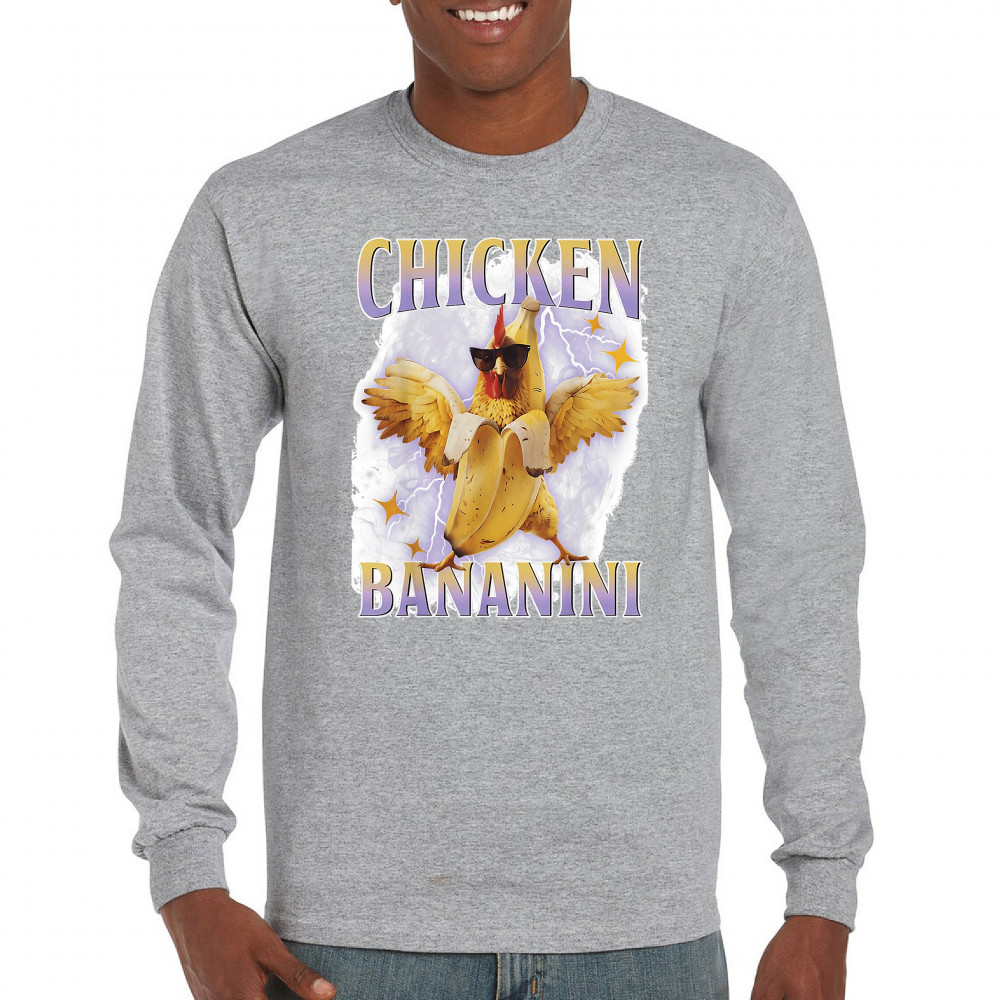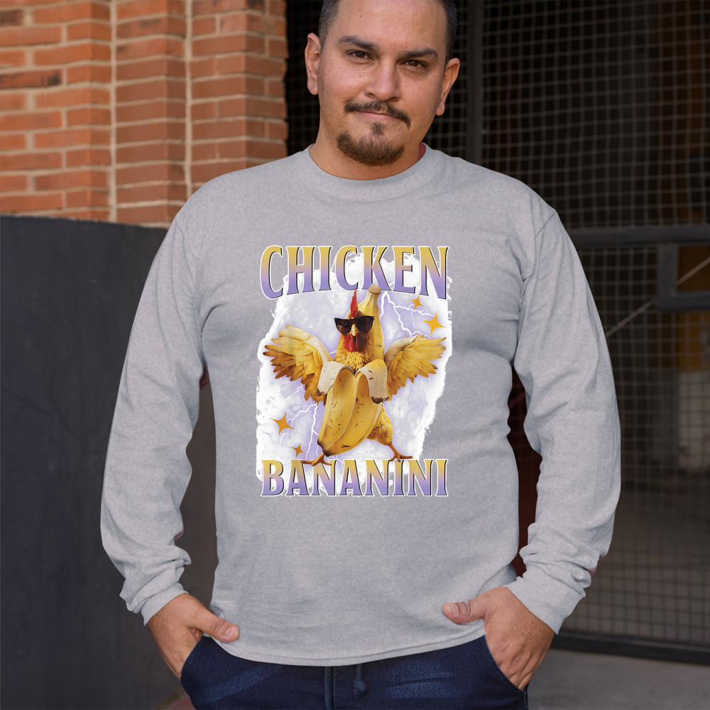Chicken Bananini is meme absurdity with extra peel. Featuring a chicken emerging from a banana and rocking shades, this design blends cursed-core fashion, viral animal humor, Gen Z brainrot, and TikTok-style chaos. A must-have for fans of ironic mashups, surreal creatures, and internet-fueled nonsense.